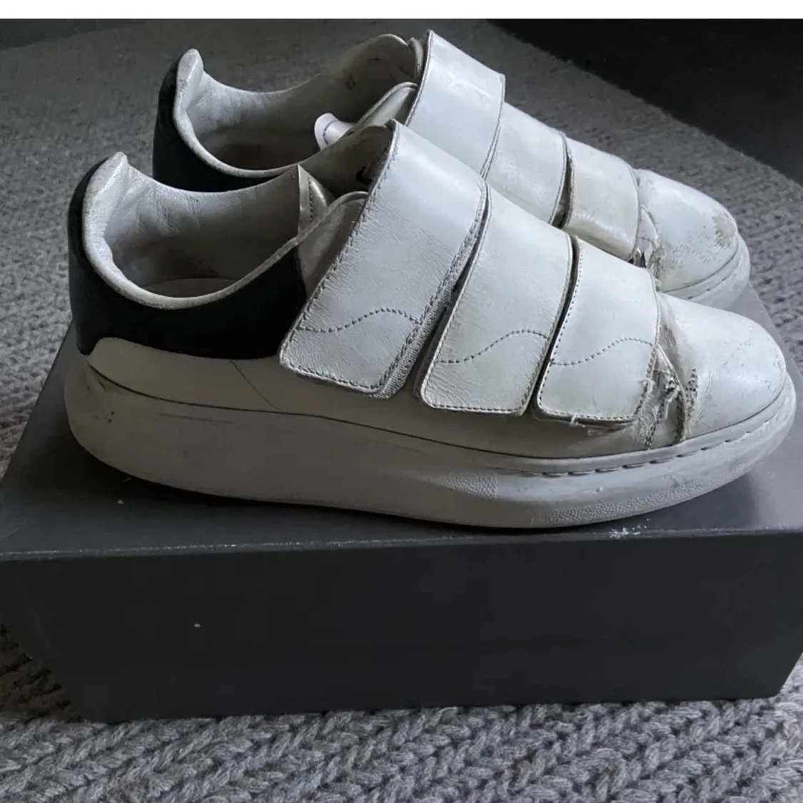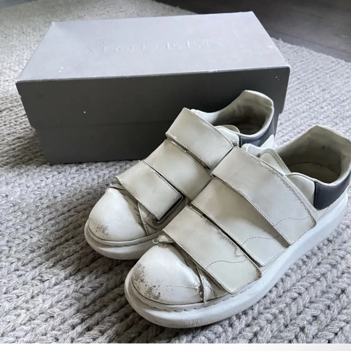 Ett par unika Alexander mcqueen sneakers med kardborreband. välanvända, köpta i Nice på Galleries Lafayette. Kommer med orginalkartong och dustbag!😁