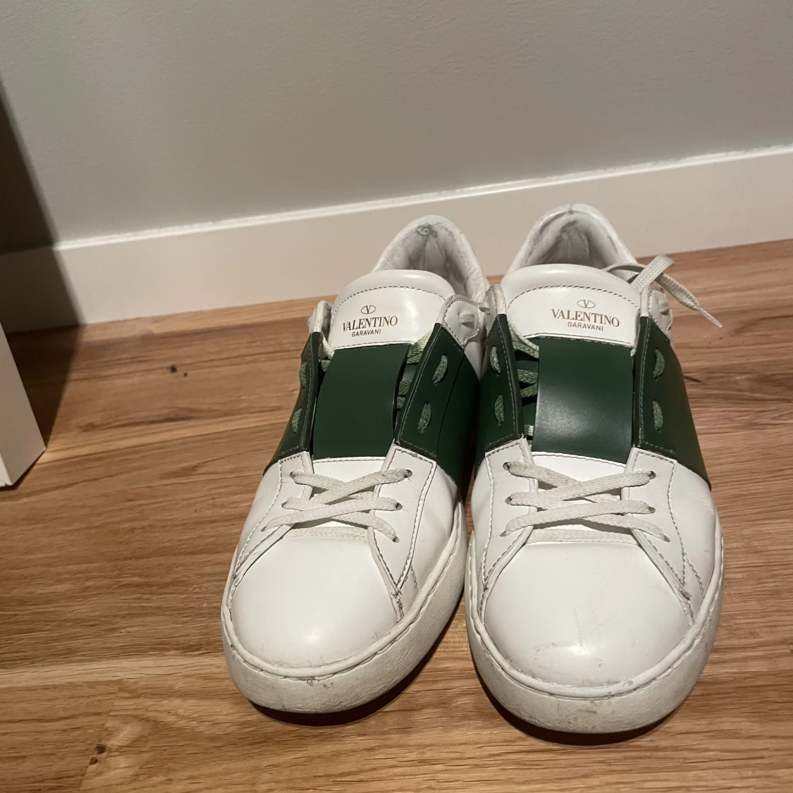 Tja säljer dessa paret från valentino, äkta och medföljer snörre och kort, dem har ett bra skick med få skador, lite slitna undertill men inget som syns under användning skulle ändå säga 8,5/10 och är storlek 41,5 men passar upp till 43