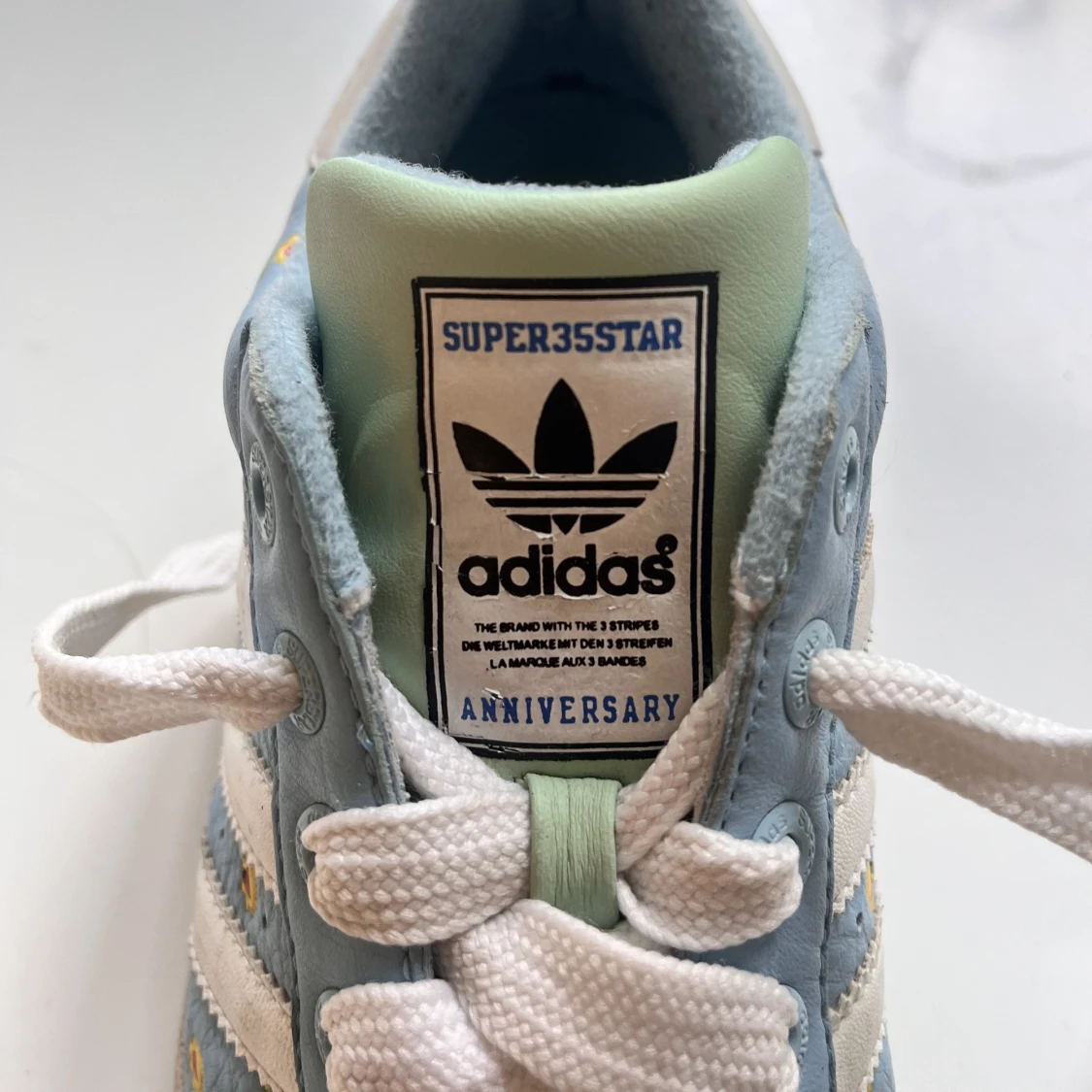 Limited edition adidas superstars, säljs för 1300kr på andra hemsidor. Själv har jag köpt dem second hand, de är i bra skick men fortfarande använda.