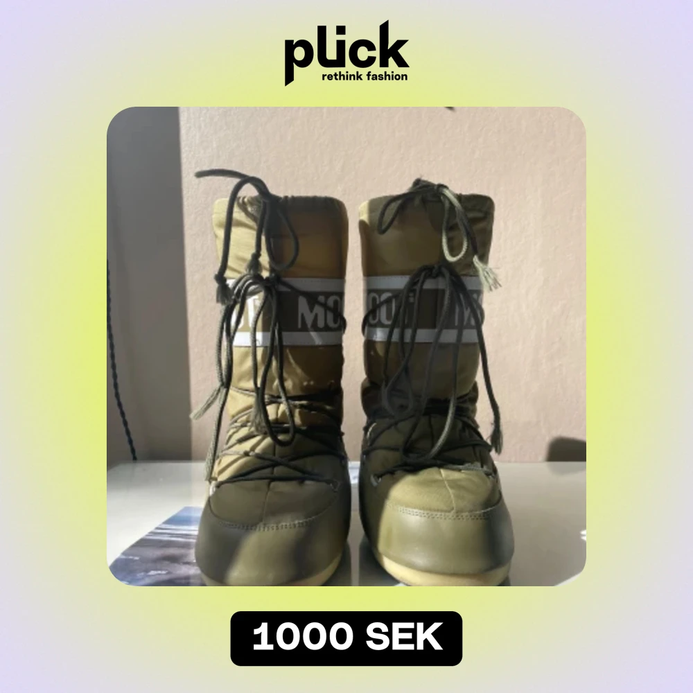 MOON BOOTS i bra skick, storlek 39/41 Själv har jag storlek 38 och tycker de passar bra! Färg khaki. Använda 1 säsong få gånger. Någon repa fram annars väldigt fint skick. 💚💚