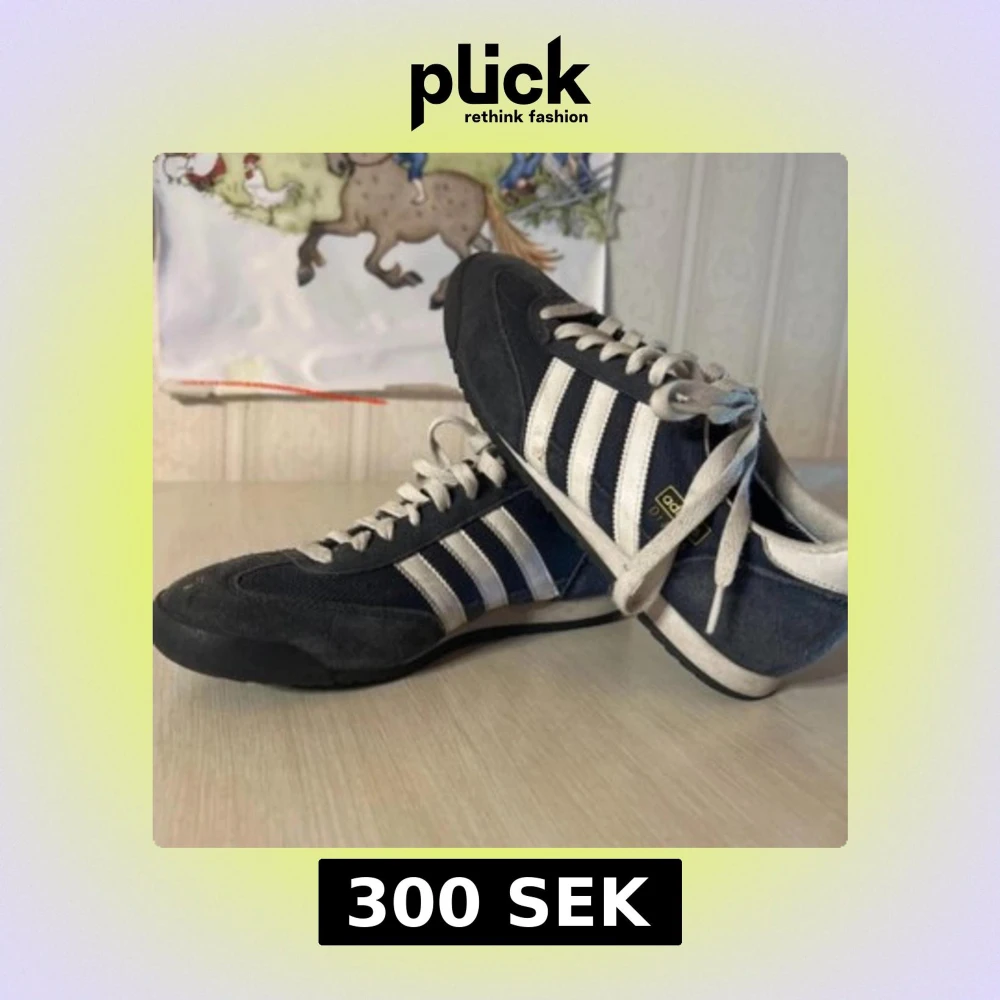Klassiska Adidas Orion sneakers i mörkblå mocka och textil med vita detaljer och de ikoniska tre ränderna på sidorna. Skorna har snörning, platt sula och guldiga Adidas-loggor på häl och plös. Perfekta för dig som gillar retrostil och streetwear och passa skostorlek 39-40