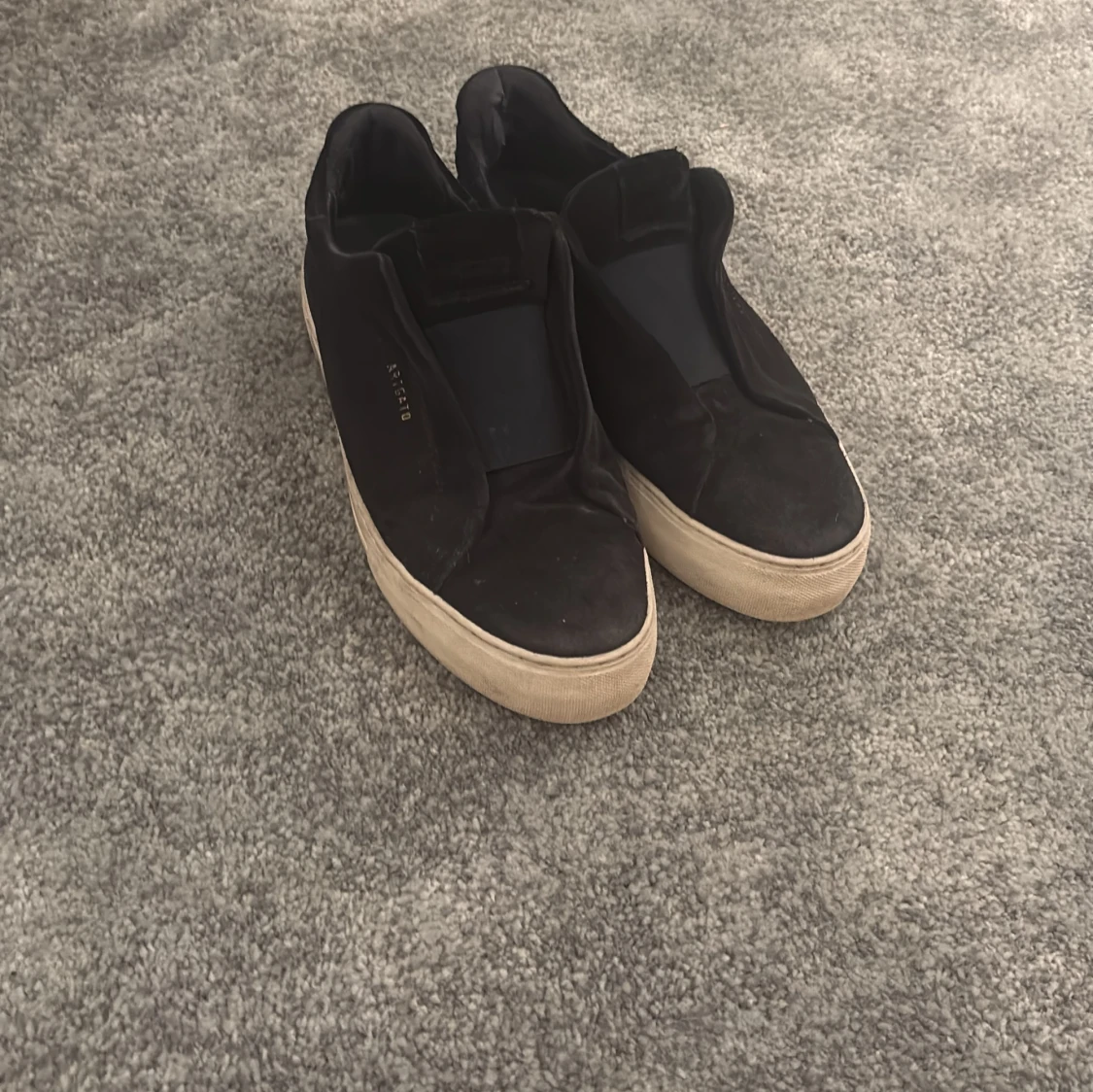 Säljer mina mörkblå arigato skor. Ena hälkappan är väldigt sliten annars relativt gott skick på dom. Nypriset ligger på cirka 2500