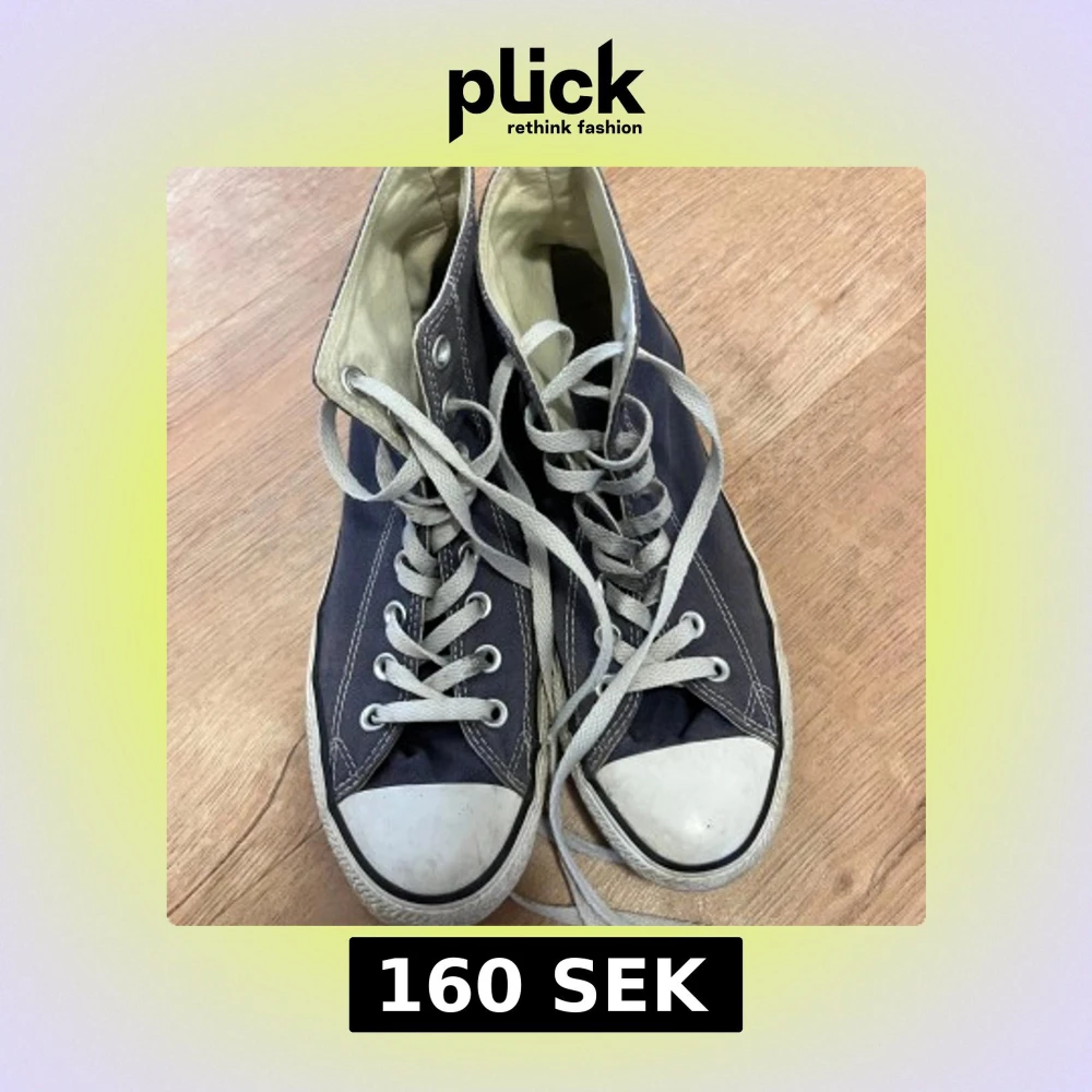 Klassiska mörkblå Converse i storlek 41. I bra skick förutom att ett av skosnörena gick sönder så sydde ihop det (se sista bilden) ☺️