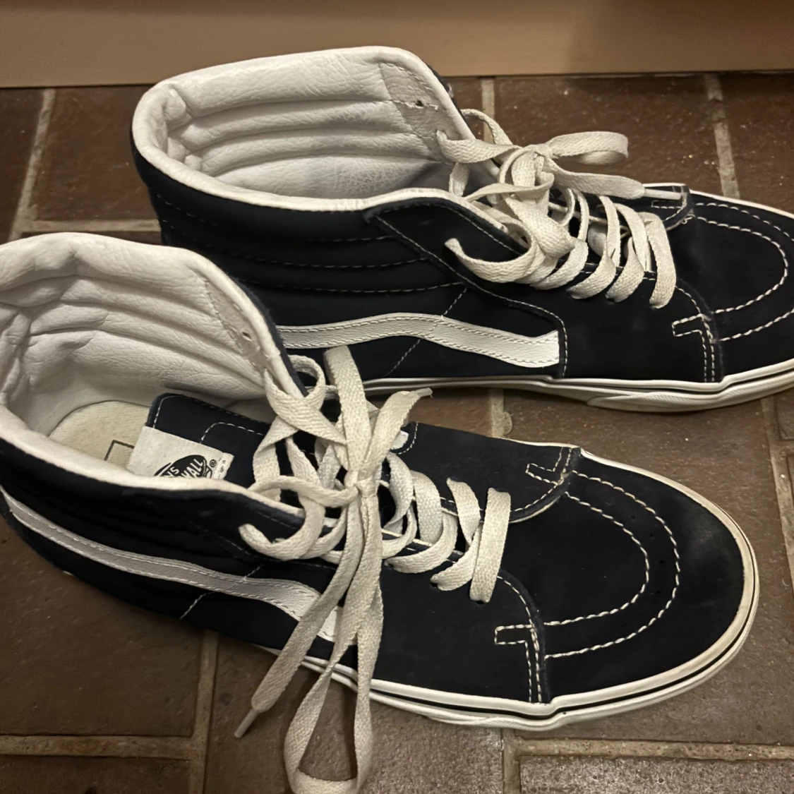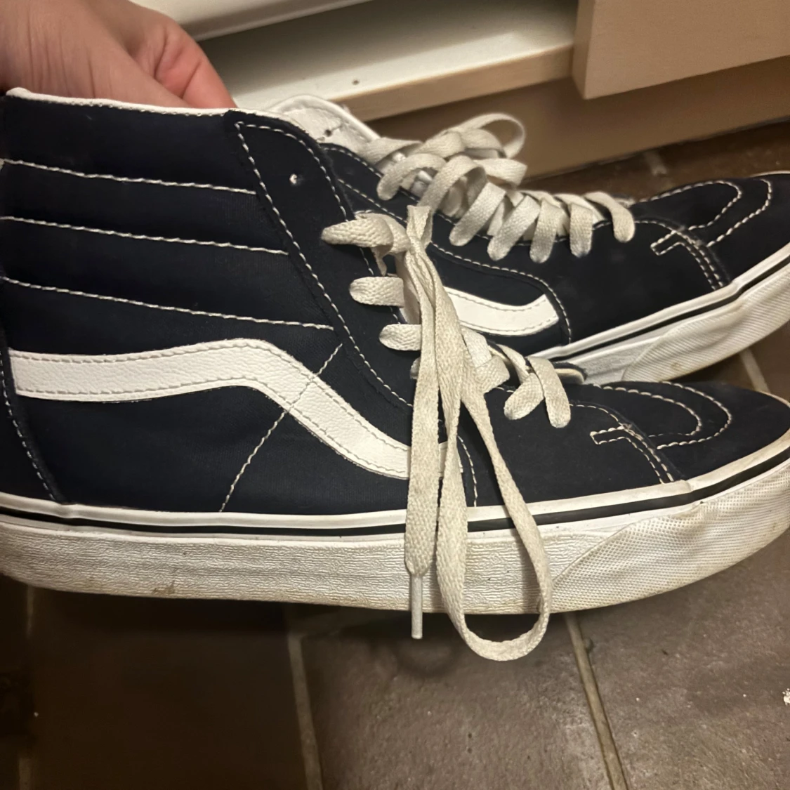 Mörkblå höga vans som endast använt utomhus ett par gånger. Inga täcken på slitage och supersnygga nu till hösten