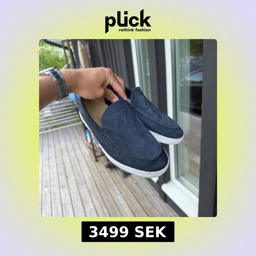 Säljer ett par stilrena mörkblå loafers från Christian Louboutin i mocka med klassisk vit sula och den ikoniska röda undersidan. Snyggt broderad CL-logga på ovansidan och rund tå. Perfekta för dig som vill ha en lyxig och clean look. Skorna är köpta i Barcelona på lyxbutiken Santa Eulalia. Tyvärr ingår inget OG då jag slängt boxen och kvittot. Nypris ligger på ca 9000-10000 och jag säljer de för endast 3499!