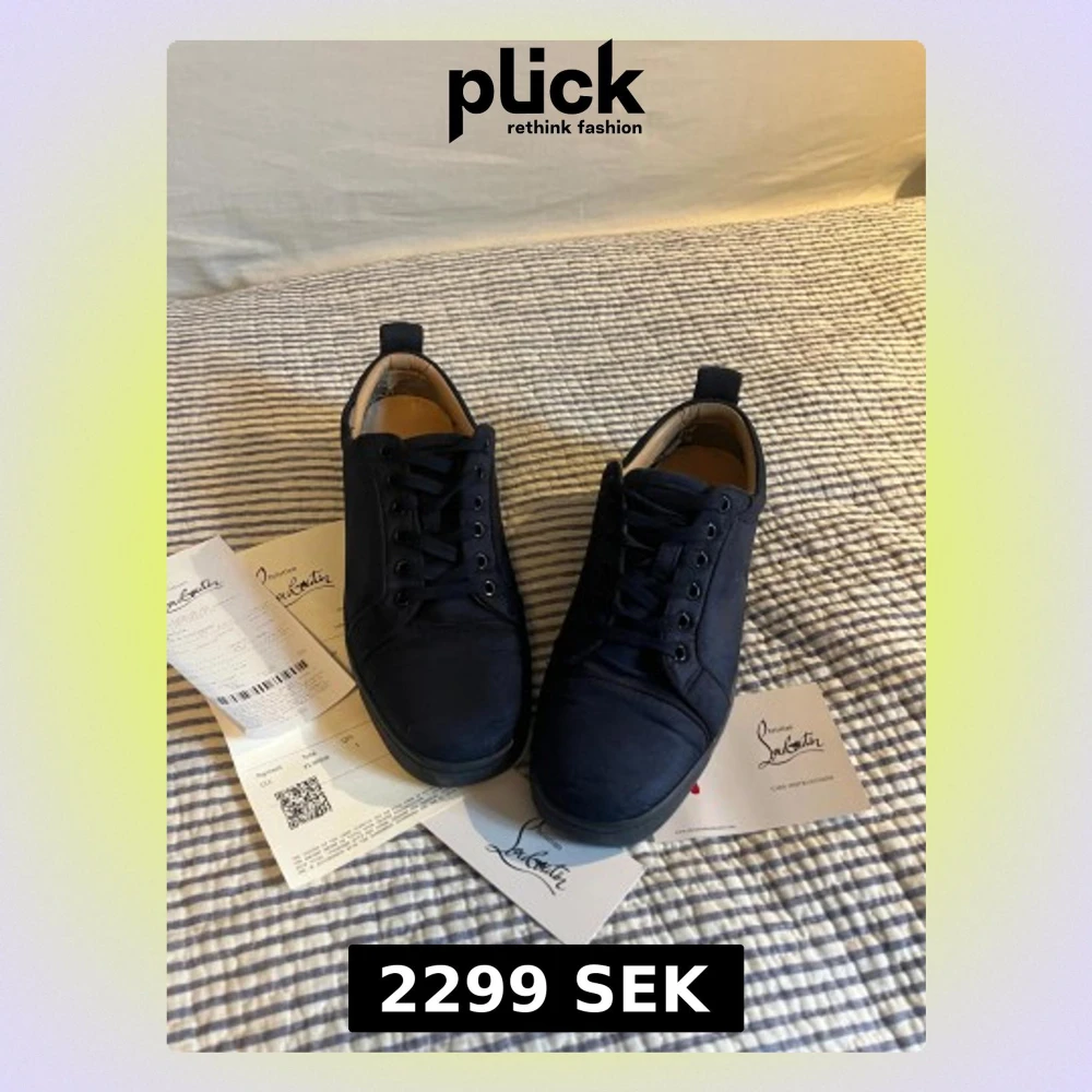 Snygga mörkblå sneakers från Christian Louboutin med blodig sula, säljer då de blivit för små, strl 40 men passar 40,5 och 41, rätt bra skick med tanke på att de är använda i 10 månader, pris kan diskuteras