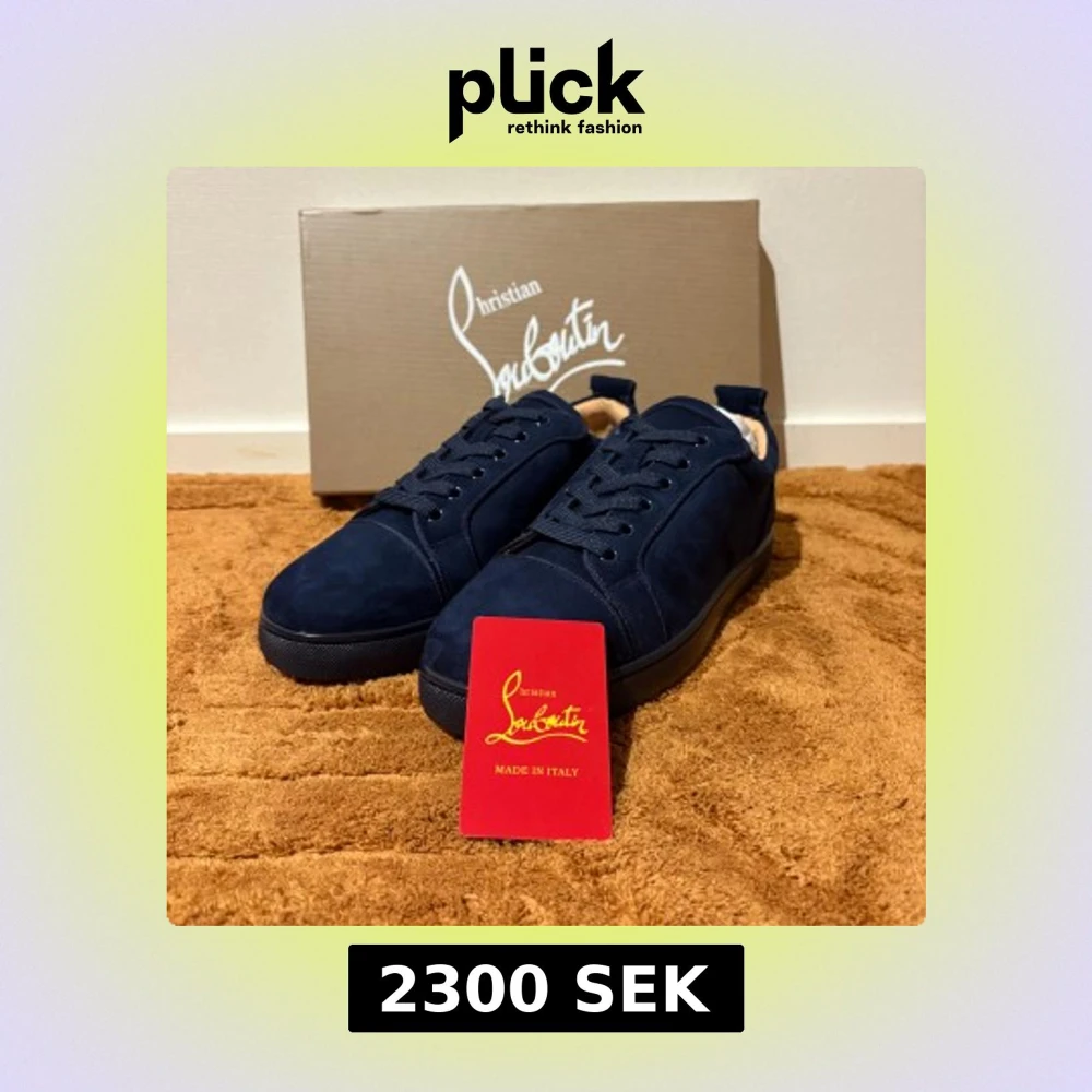 Snygga mörkblå sneakers från Christian Louboutin i mjuk mocka med klassisk röd sula och diskret broderad logga på hälen. Skorna har rund tå, platt sula och snörning framtill. Perfekt för dig som gillar exklusiv stil och detaljer.