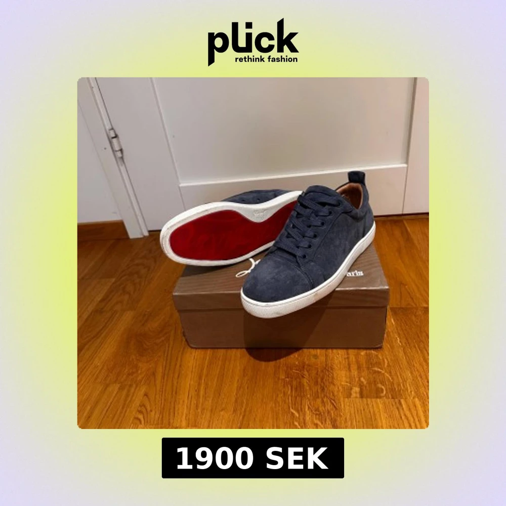 Snygga mörkblå sneakers i mocka från Christian Louboutin med klassisk röd sula. Skorna har snörning och en vit sula som ger en stilren look. Perfekta för att lyfta din stil med en touch av lyx.