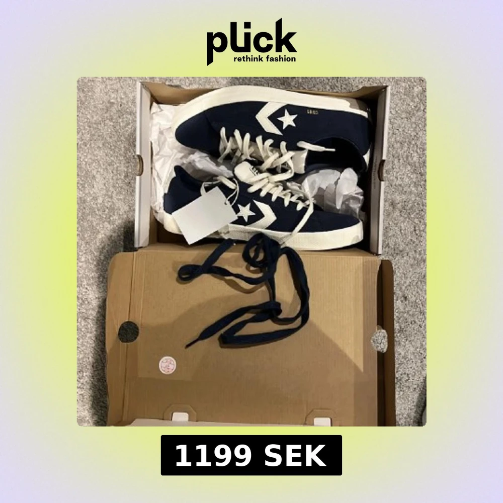 Säljer ett par mörkblå Converse sneakers med vita detaljer och stjärnlogga på sidan. Skorna har vita snören, platt sula och rund tå. Perfekta för en avslappnad stil och passar till jeans eller shorts. Pris kan diskuteras vid smidig affär:).