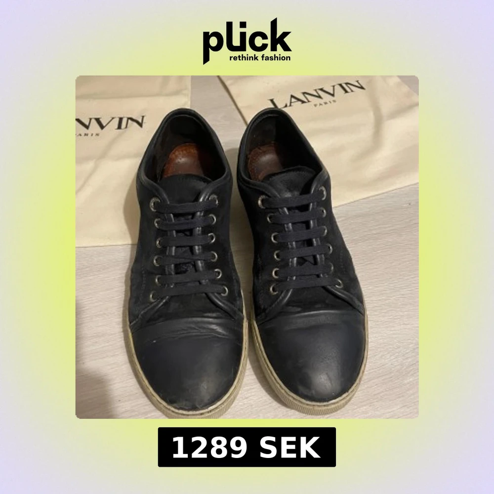 Snygga mörkblå sneakers från Lanvin med snörning och rund tå. Skorna har en stilren design med en vit sula som ger en fin kontrast. Perfekta för en avslappnad men ändå elegant stil. Uk 7 = 41-42