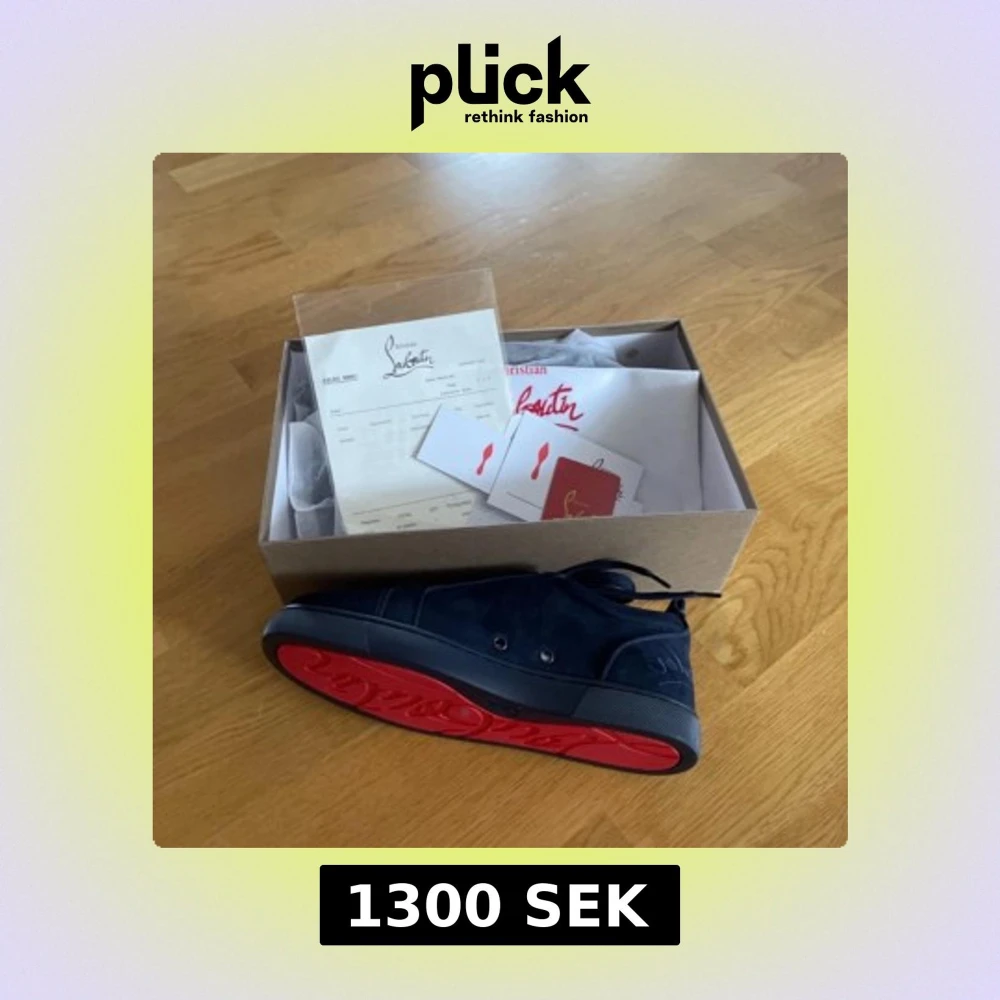 !!Priset kan diskuteras vid snabbaffär!!Snygga mörkblå sneakers från Louboutin i mocka med klassisk röd sula och broderad logga på hälen. Skorna har rund tå, platt sula och snörning. Insidan är fodrad i beige läder för extra komfort. Perfekta för dig som vill sticka ut med exklusiv stil.