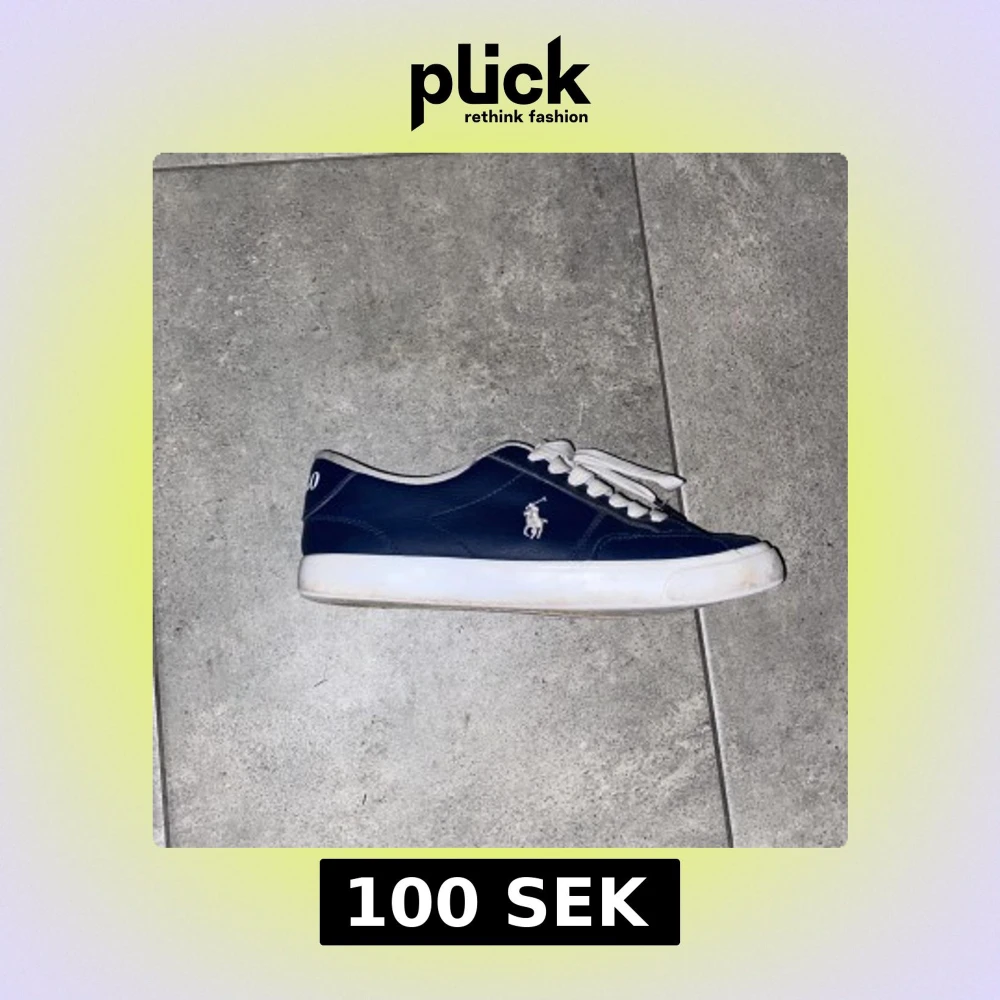 Snygga mörkblå sneakers från Polo Ralph Lauren med vit logga på sidan och vit sula. Skorna har rund tå, snörning med vita skosnören och är tillverkade i syntetmaterial med textilfoder. Perfekt för dig som gillar klassisk och sportig stil. Skorna är lite slitna men funkar helt utmärkt. Skriv om du undrar något😃