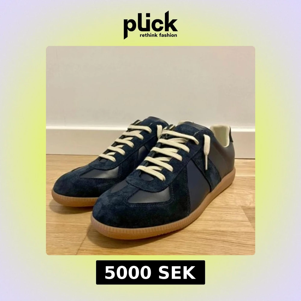 Snygga mörkblå sneakers med ovandel i mocka och syntet. Skorna har vita snören och en brun sula som ger en stilren look. Perfekta för en avslappnad stil.