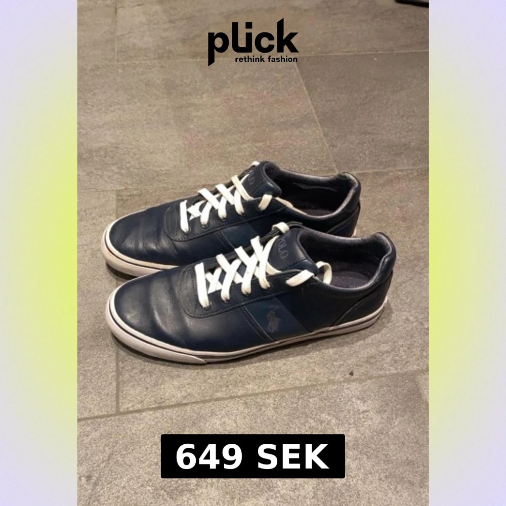 Snygga mörkblå sneakers från Polo Ralph Lauren med vit sula och vita snören. Skorna har klassisk låg profil, rund tå och är tillverkade i skinn. Polo-logga på sidan och märkesdetaljer på plös och innersula. Perfekta för en clean och stilren look.