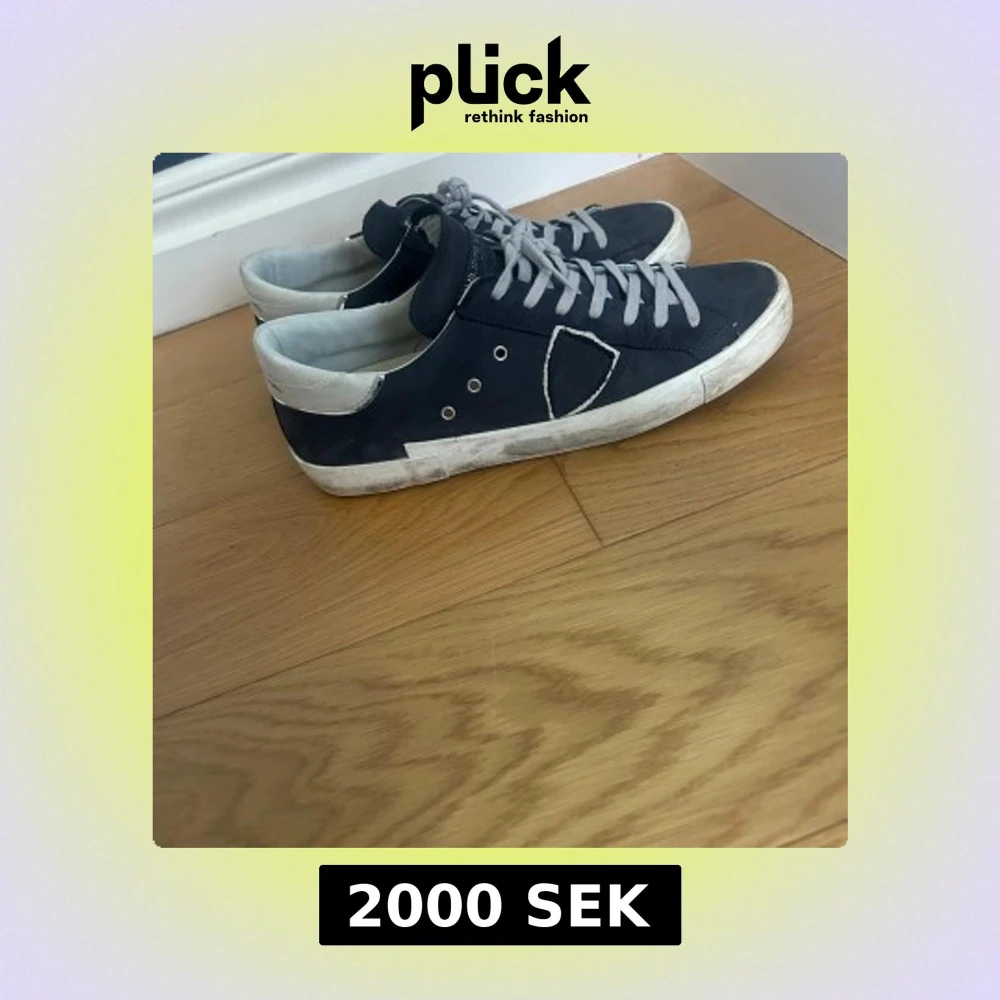 Snygga blåa sneakers från Philippe Model med vita detaljer och snörning. Skorna har en klassisk design med en vit sula och är imprincip i nyskick.