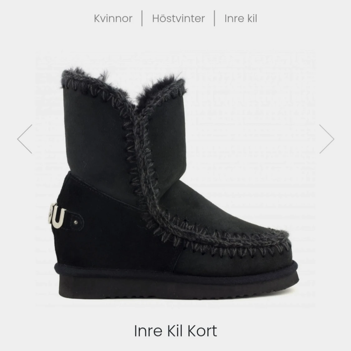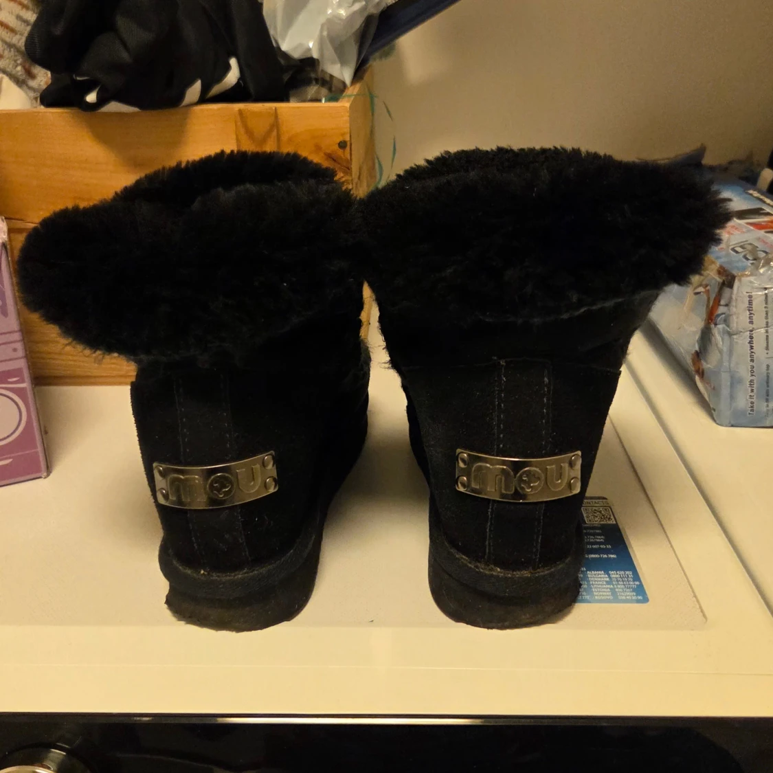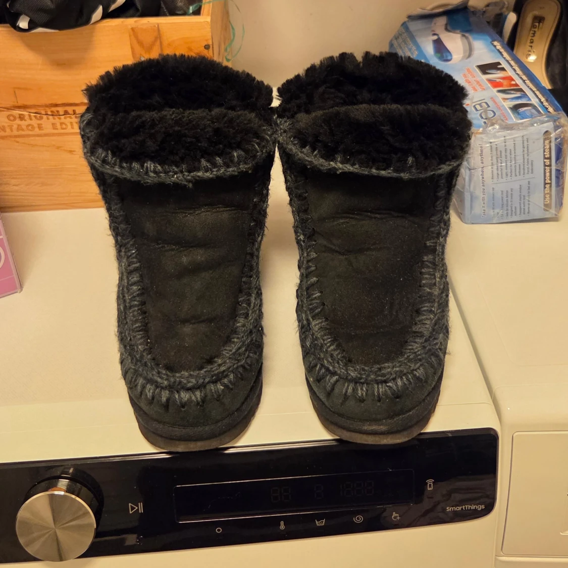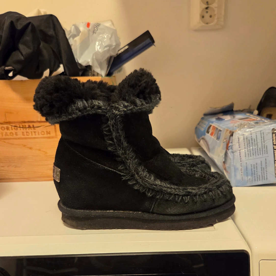 Ett par väldigt fina mou skor i färgen svart. Har bara använts några gånger så är i väldigt fint skick. Inga defekter, och så är fodret inne som nytt. Skon har en upphöjd innersula ( orginal). Du kan se orginal bild på sista sidan.