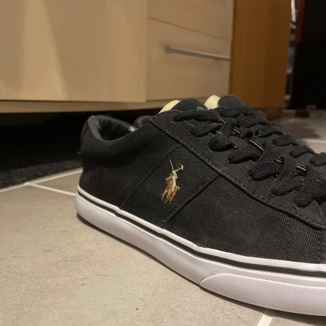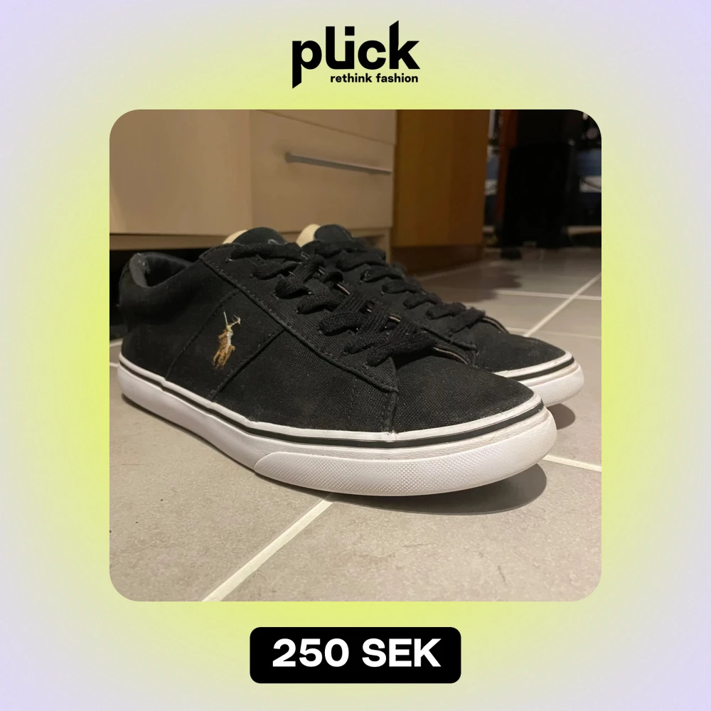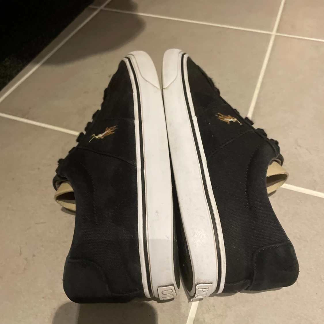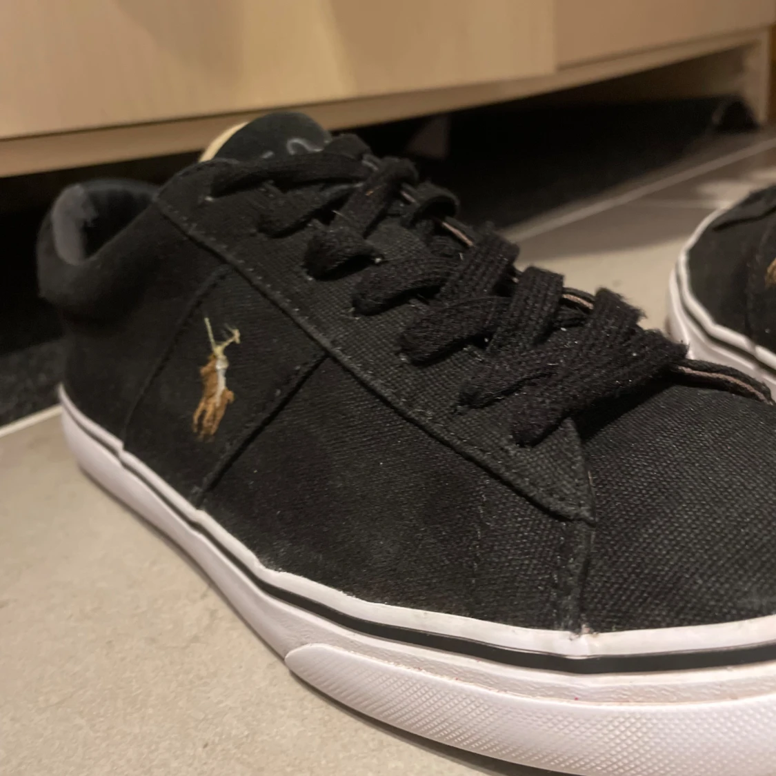 Säljer ett par Ralph lauren skor i svart med vit sula. Brodererat på baksidan polo. Används mycket flitigt och aldrig blivit smutsig. Kan gå med på ett bra pris vid en snabb affär! Original box medföljer ej pga av att jag inte hittar den. Kvitto finns kvar!