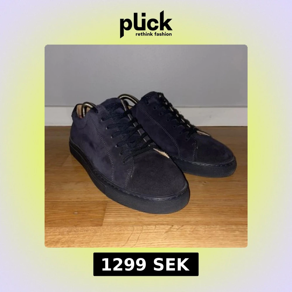 Snygga mörkblå sneakers från Myrqvist i mocka med mörkblå sula och skosnören. Insidan är fodrad i beige skinn för extra komfort. Klassisk rund tå och stilren design som passar till det mesta. Så gott som nya; endast använda ett fåtal gånger