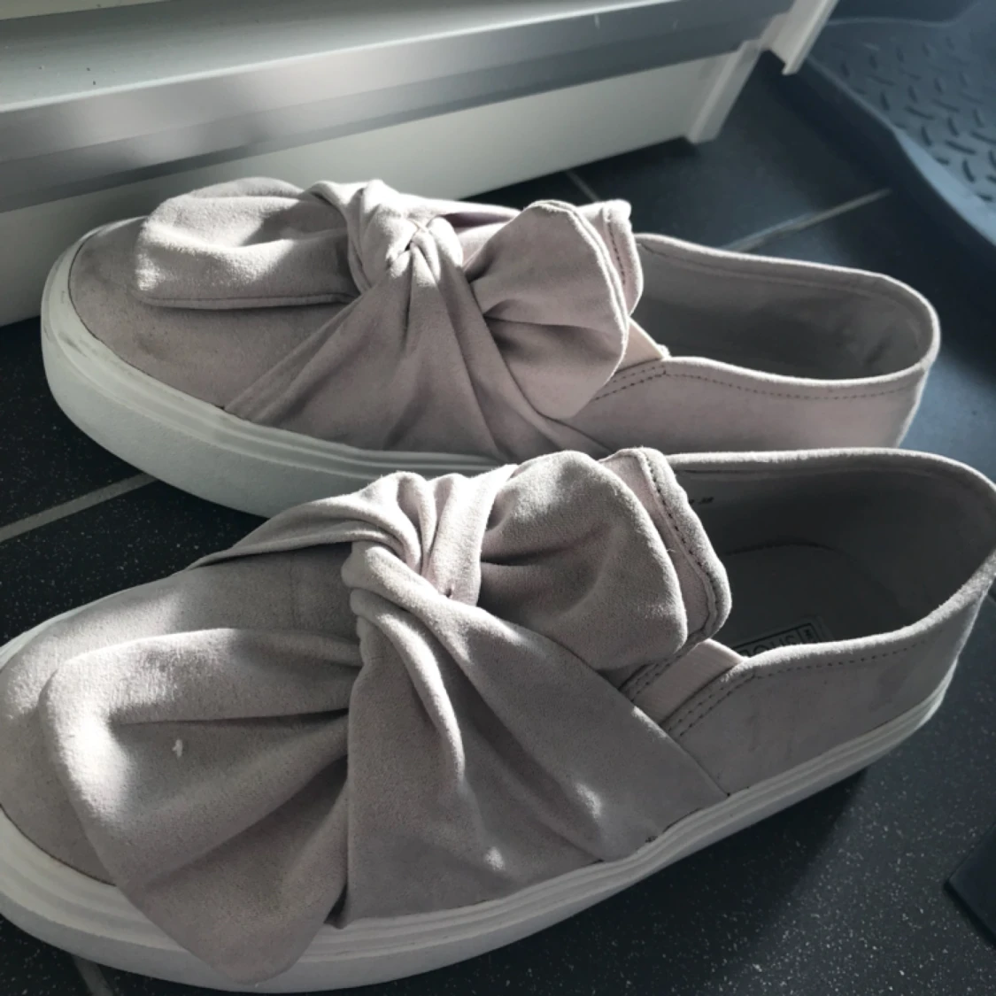 Ett par grå skor från Nelly med rosett vid framsidan i storlek 38, passar även strl 39. Helt nya, har aldrig använts. Säljer för 180kr!
