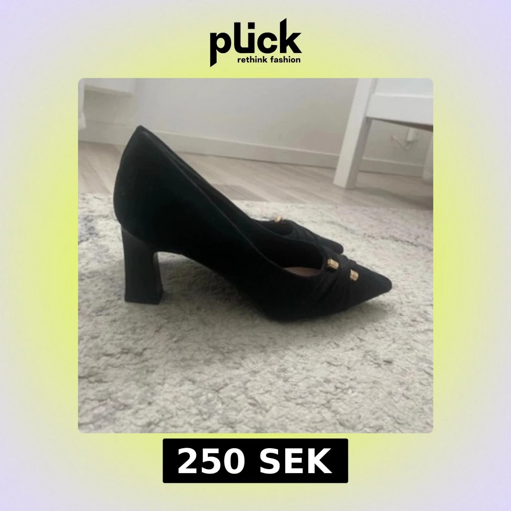 Stilrena svarta pumps från NA-KD i mocka-look med spetsig tå och låg klack. Skorna har snygga guldfärgade detaljer framtill som ger en extra touch. Perfekta för dig som gillar klassisk men trendig stil.