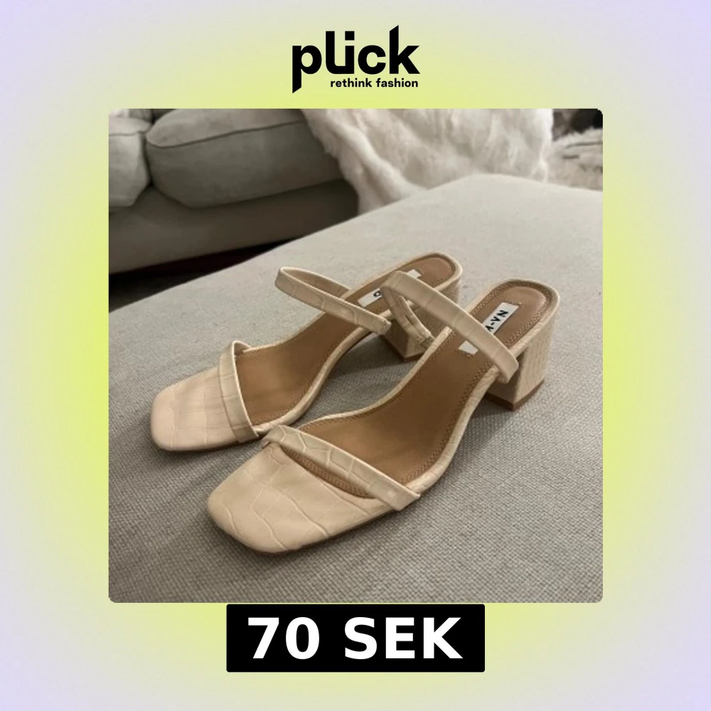 Stilrena beige sandaler från NA-KD med fyrkantig tå och blockklack. Skorna har krokopräglat mönster och tunna remmar över foten och runt vristen. Använda vid ett tillfälle🌸
