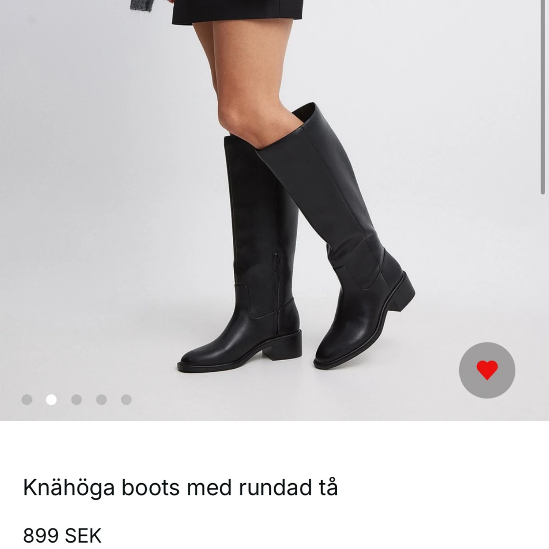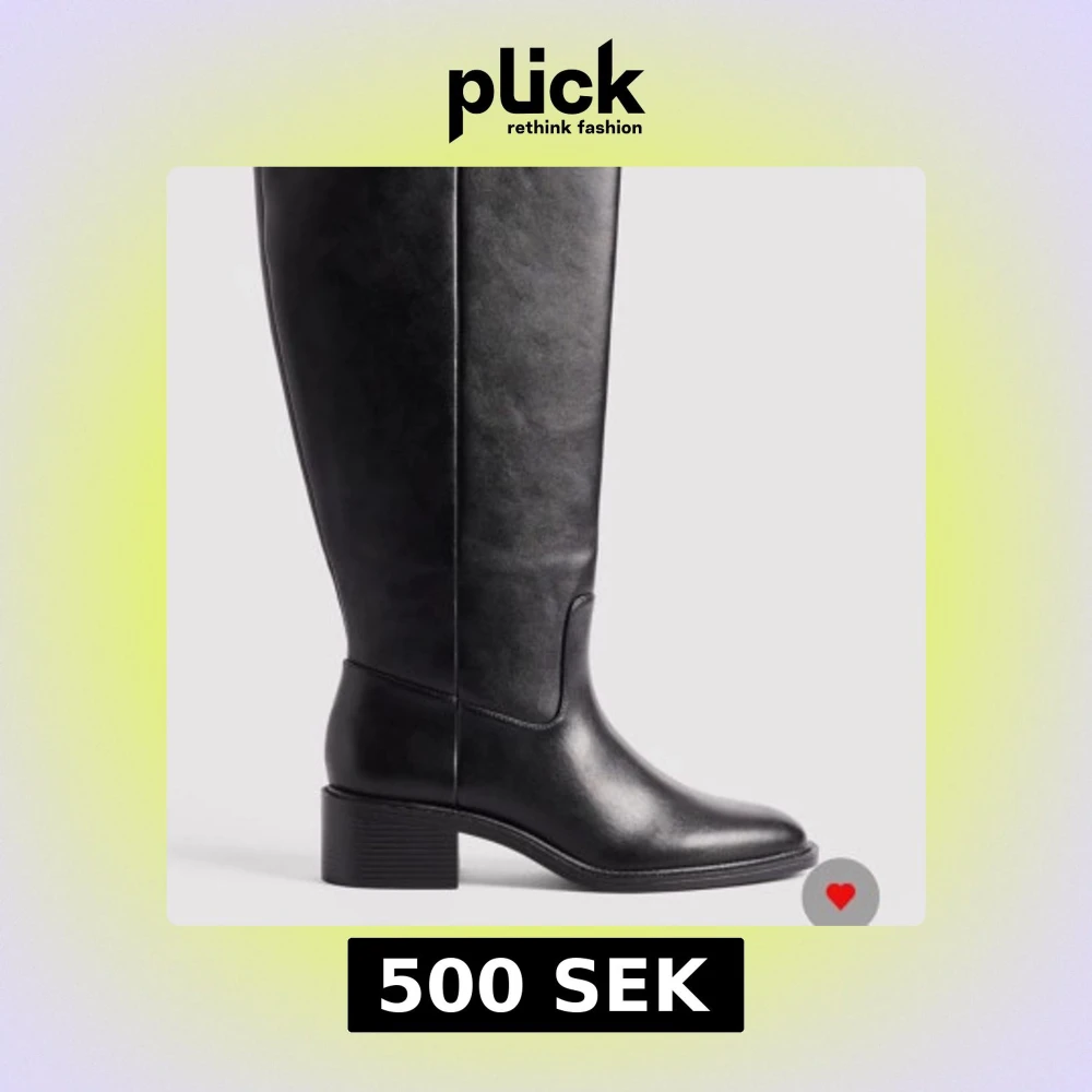 Säljer ett par stilrena svarta knähöga boots med rund tå och låg klack. Skorna är i slätt skinn och har en klassisk design som passar till många outfits. Perfekta för dig som vill ha ett par tidlösa boots till garderoben. Endast använt dom 2 gånger satt som nya
