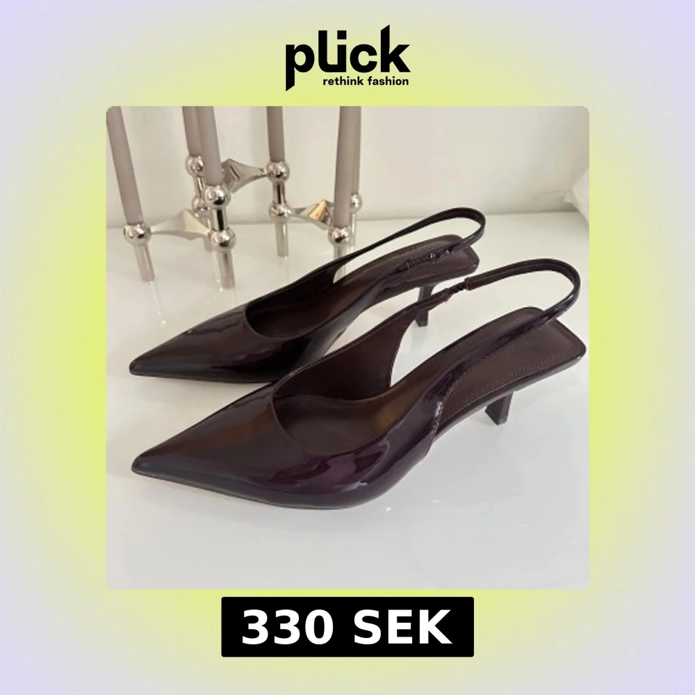 Snygga burgundy pumps med lackad finish och spetsig tå. Skorna har en låg klack och en hälsremsdesign med elasticering. Perfekta för dig som vill ha en elegant och trendig look. Helt oanvända! Ordinarie pris 499:-