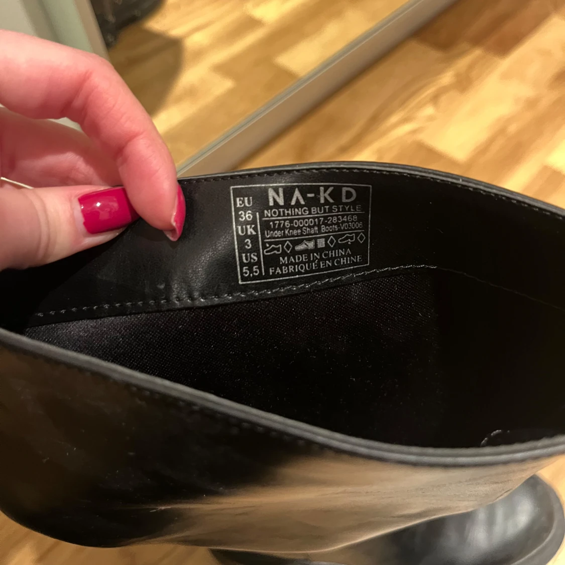 Snygga svarta stövlar från NA-KD med dragkedja på insidan. De är i storlek 36 och är använda ett fåtal gånger.Tillverkade i syntetmaterial med en klassisk design.