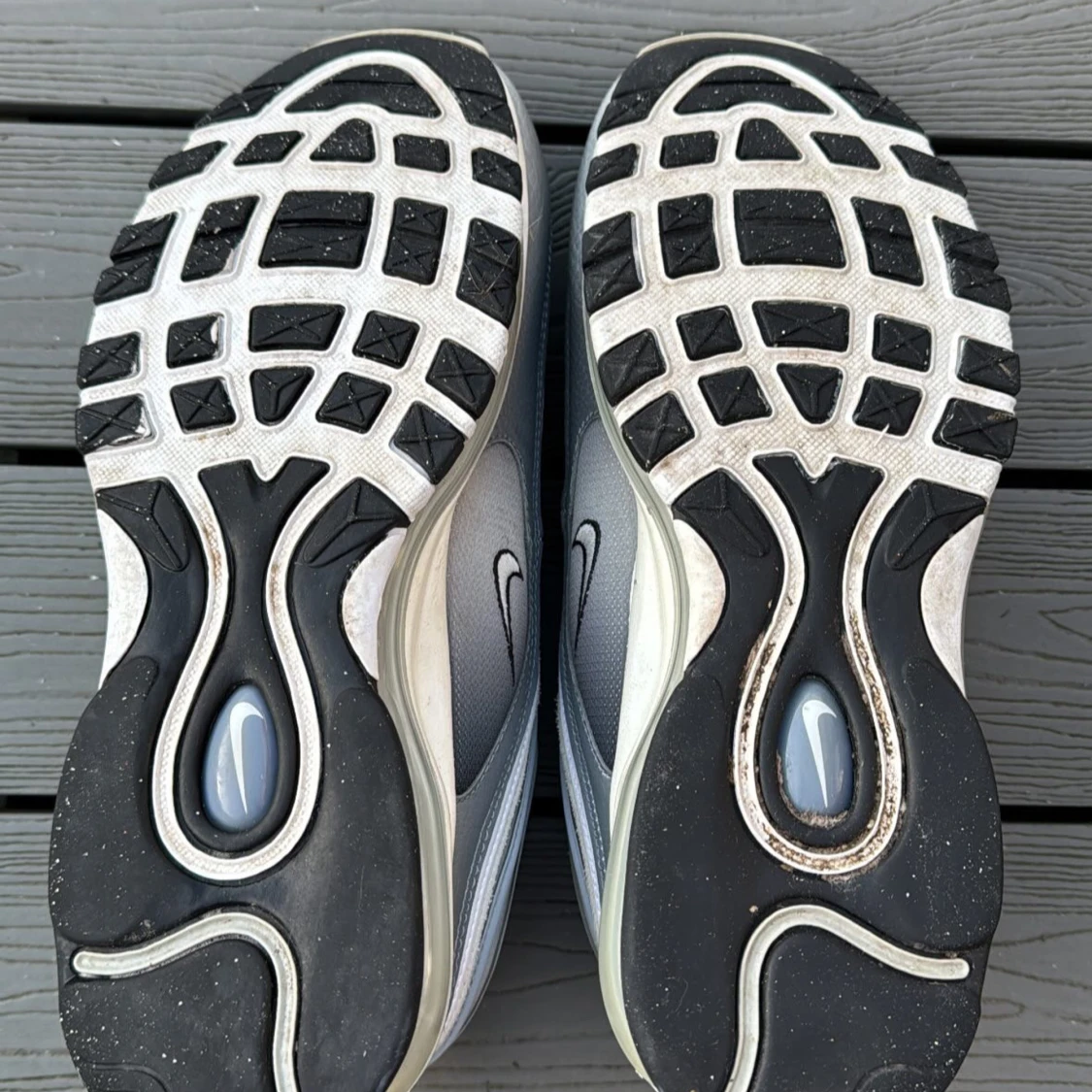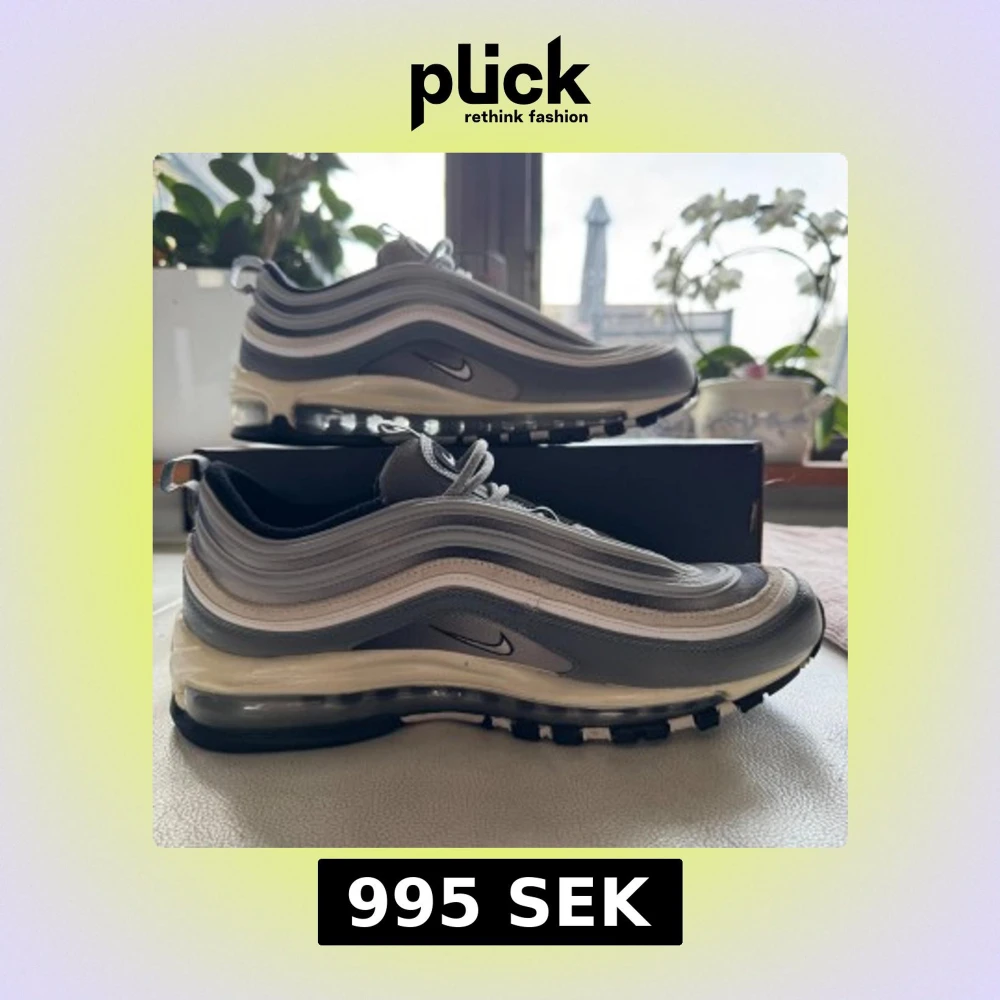 Säljer ett par stilrena Nike Air Max 97 i grå och vit. Skorna har en ikonisk vågig design med synlig Air-enhet i sulan för extra komfort. Perfekta för både vardag och träning. Enbart använda ett fåtal ggr, nästintill oanvända. Nypris ca 2300 kr.