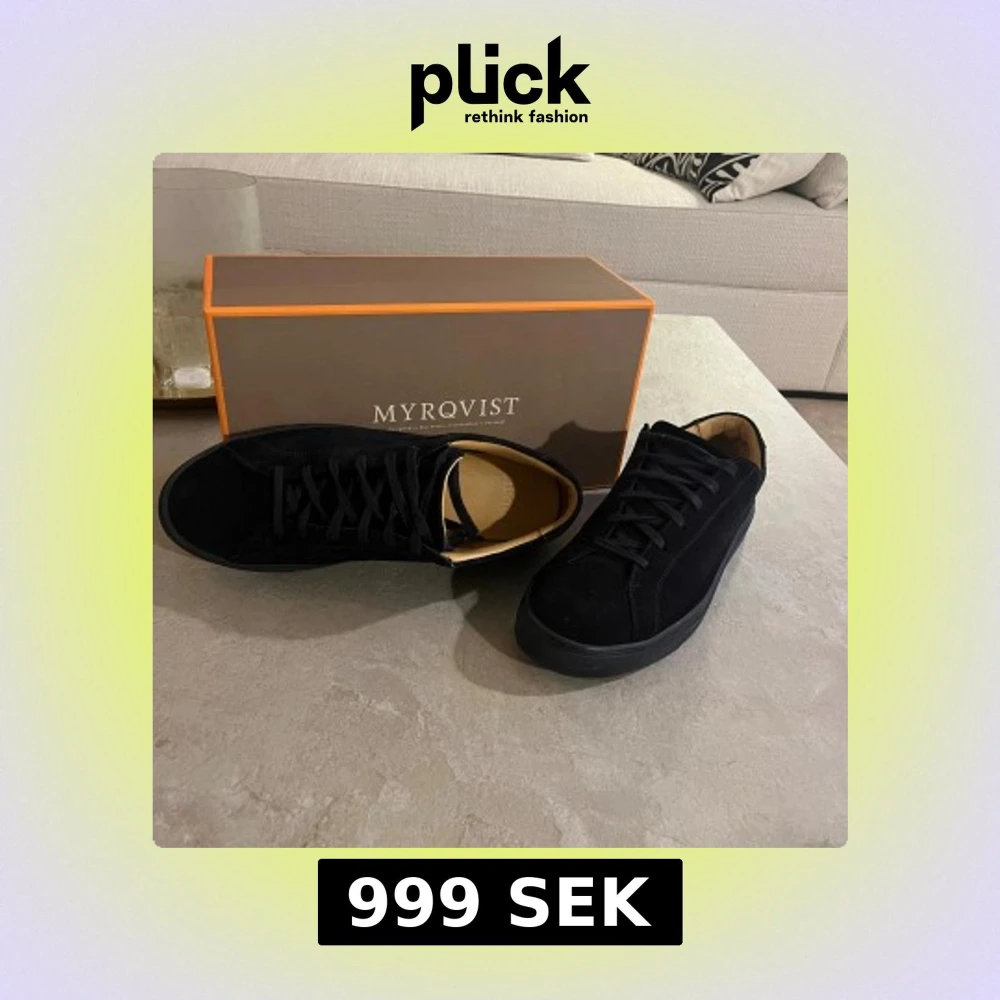 Snygga Mörkblåa sneakers från Myrqvist i mjuk mocka med rund tå och platt sula. Skorna är i mycket fint skick och väldigt sparsamt använda. Nypris 2000, jag säljer för halva priset! Hör av dig vid frågor!