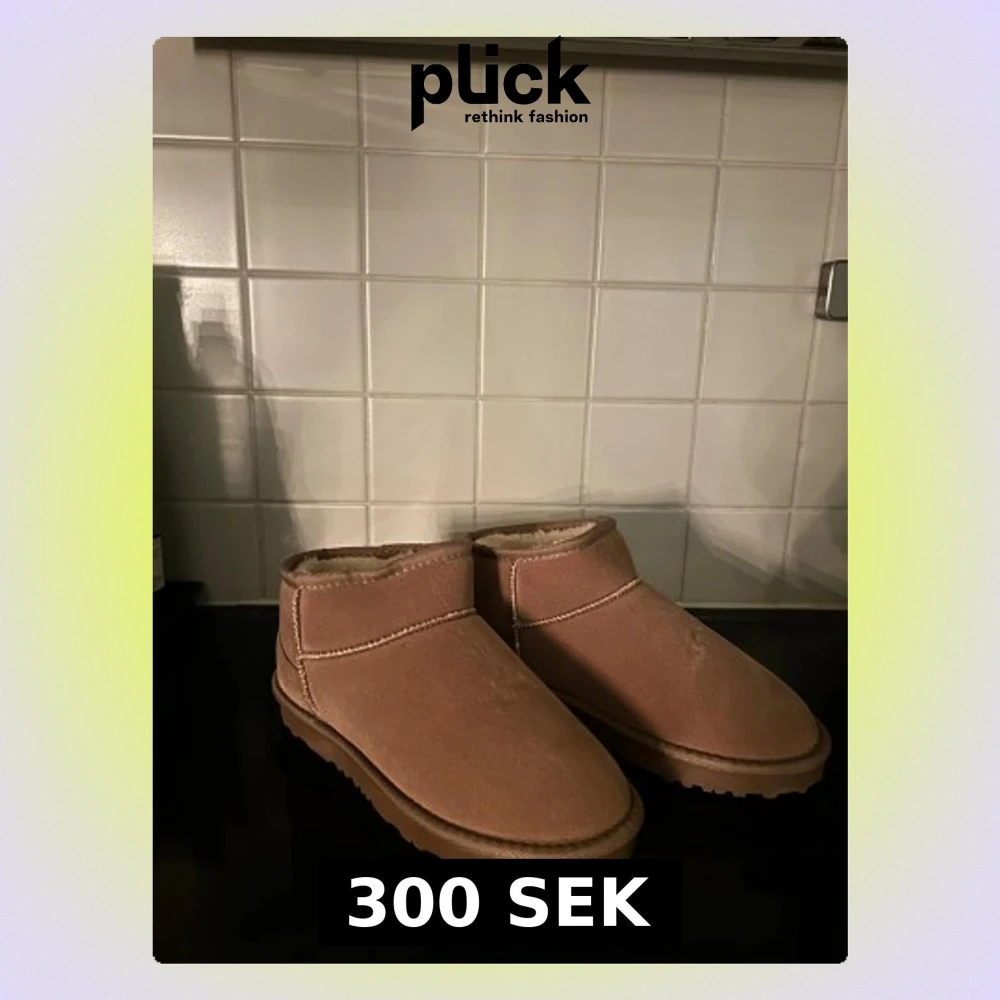 Säljer ett par beige boots med rund tå och platt sula. Utsidan är i mjuk mocka och insidan är fodrad med fluffigt material för extra värme. Snygga sömmar och låg skaftlängd ger en chill vibe. Perfekta för kalla dagar och enkel att matcha med jeans eller leggings.