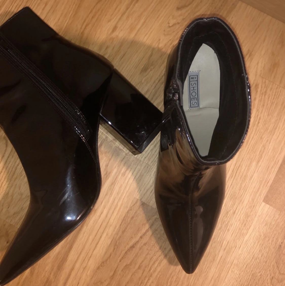 Ett par svarta lackade klackar från Nelly köpt för ett år sedan. Andvända fåtal gånger, iprincip nyskick. Strl 38 säljer för 250 kr, frakten tillkommer 🥰