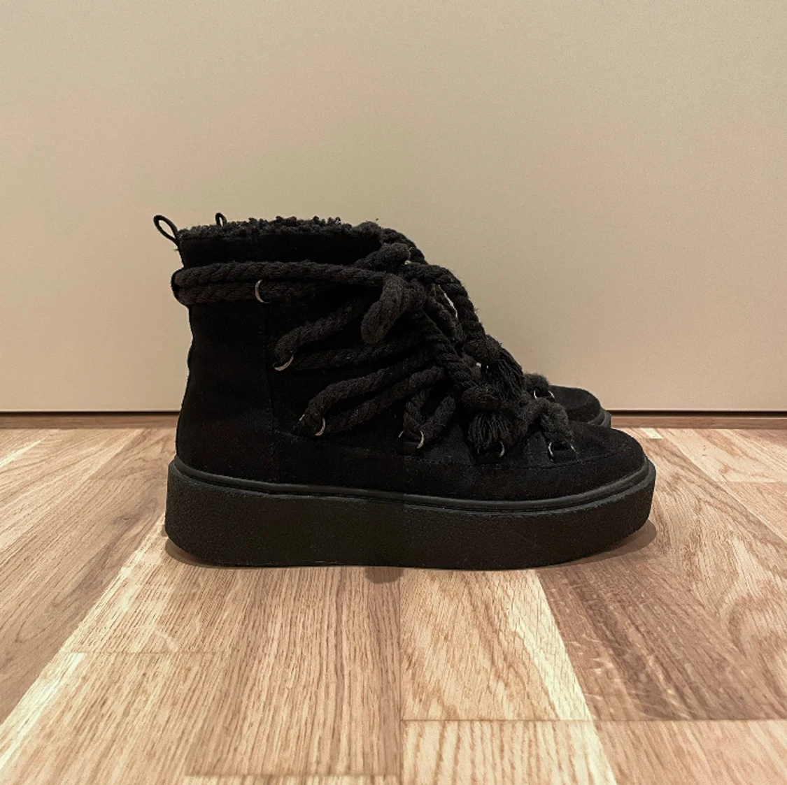Säljer dessa svarta Inuikii-liknande skor från Nelly, endast använda 2-3 gånger så fint skick! Nypris 500kr 🥰