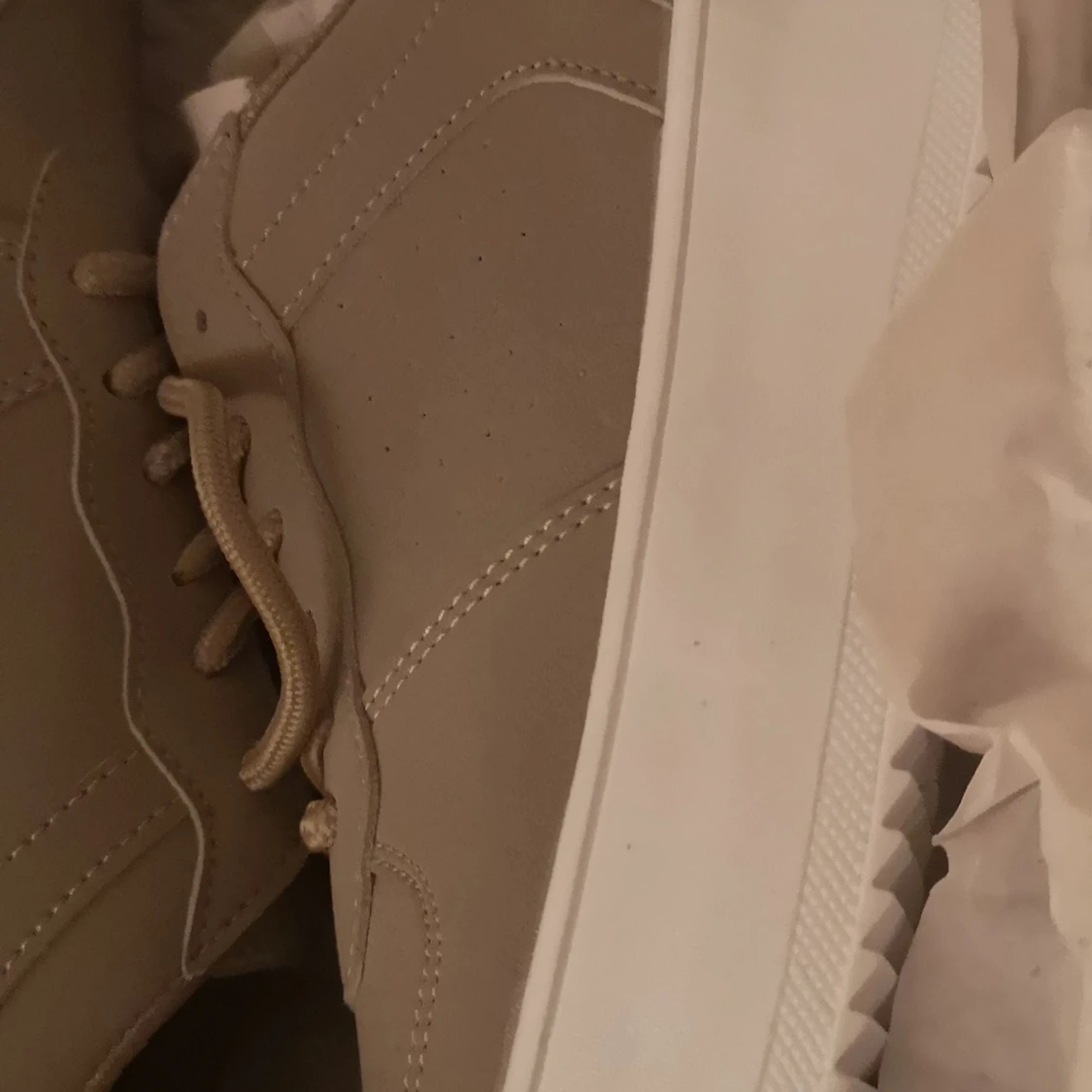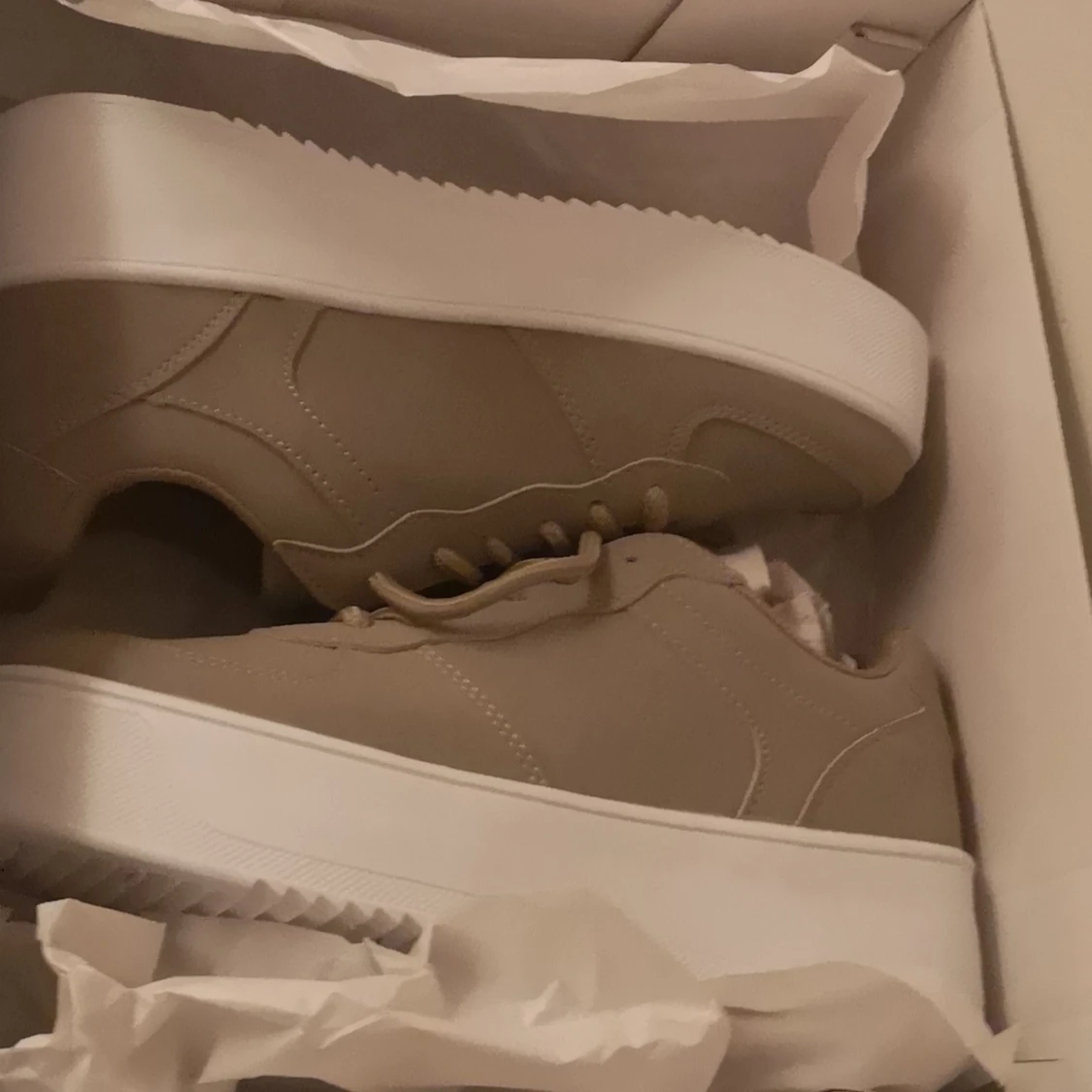Sneakers från Nelly fett snygga begie med grön underton. Har provat de bara en gång inomhus så de är som nya. Köptes för 349kr och säljer för 250kr. Möts i Umeå eller fraktar. *köparen står för frakten(66kr)😊