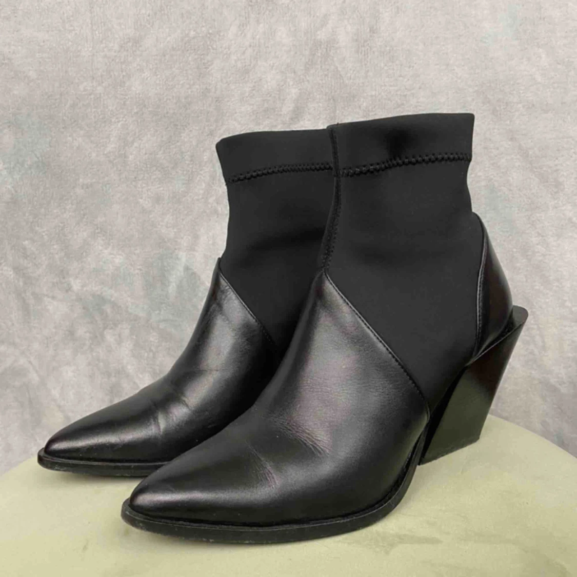 Jag säljer ett par Rodebjer klackskor i svar skin och neopren. De är använda max 5 gånger, bra skick. Färg: Svart Klackhöjd: 9cm Nypris: 3495 sek