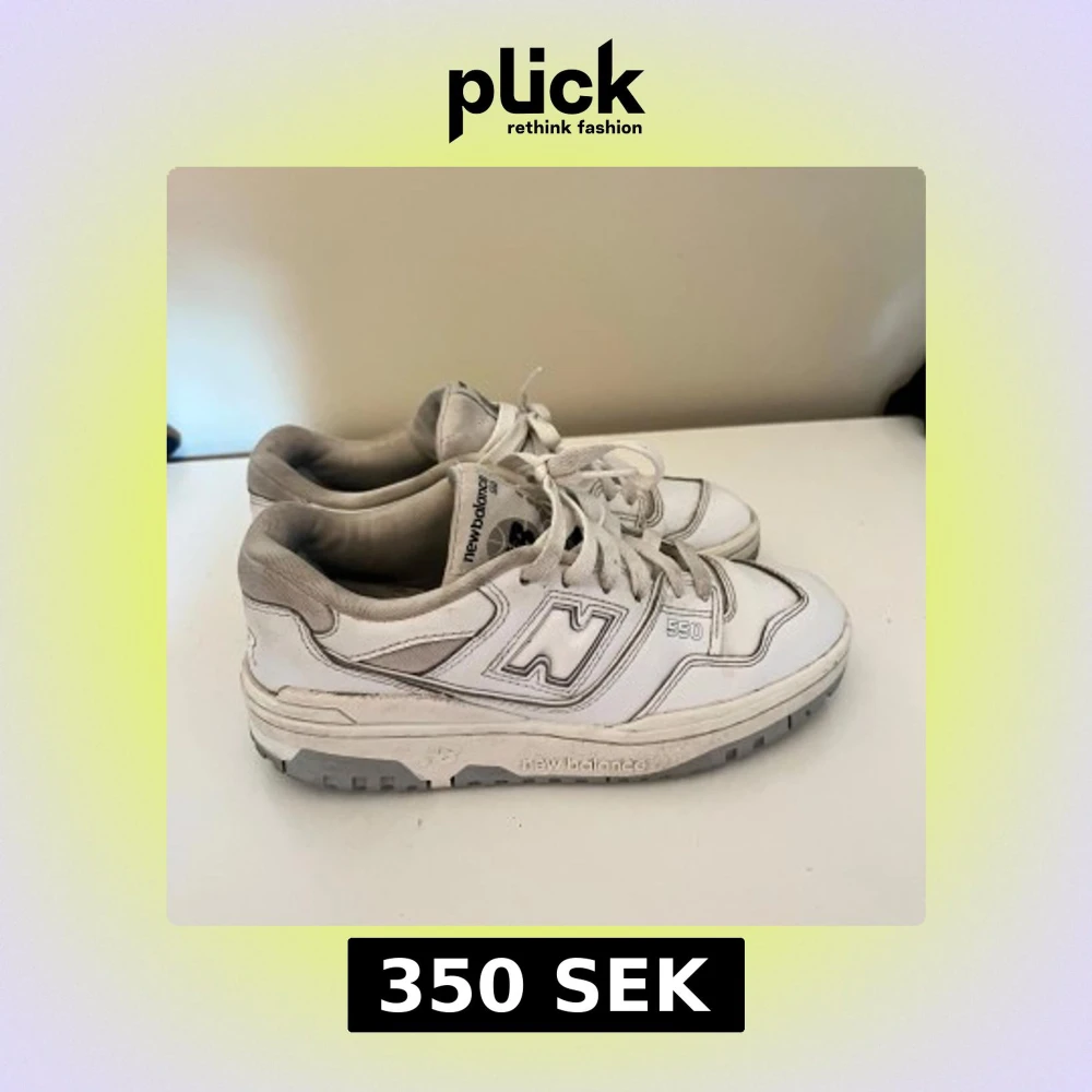 Säljer ett par klassiska New Balance 550 sneakers i vitt med gråa detaljer. Använd ganska många gånger men fortfarande bra skick på dom. Köpte dom för 950kr.