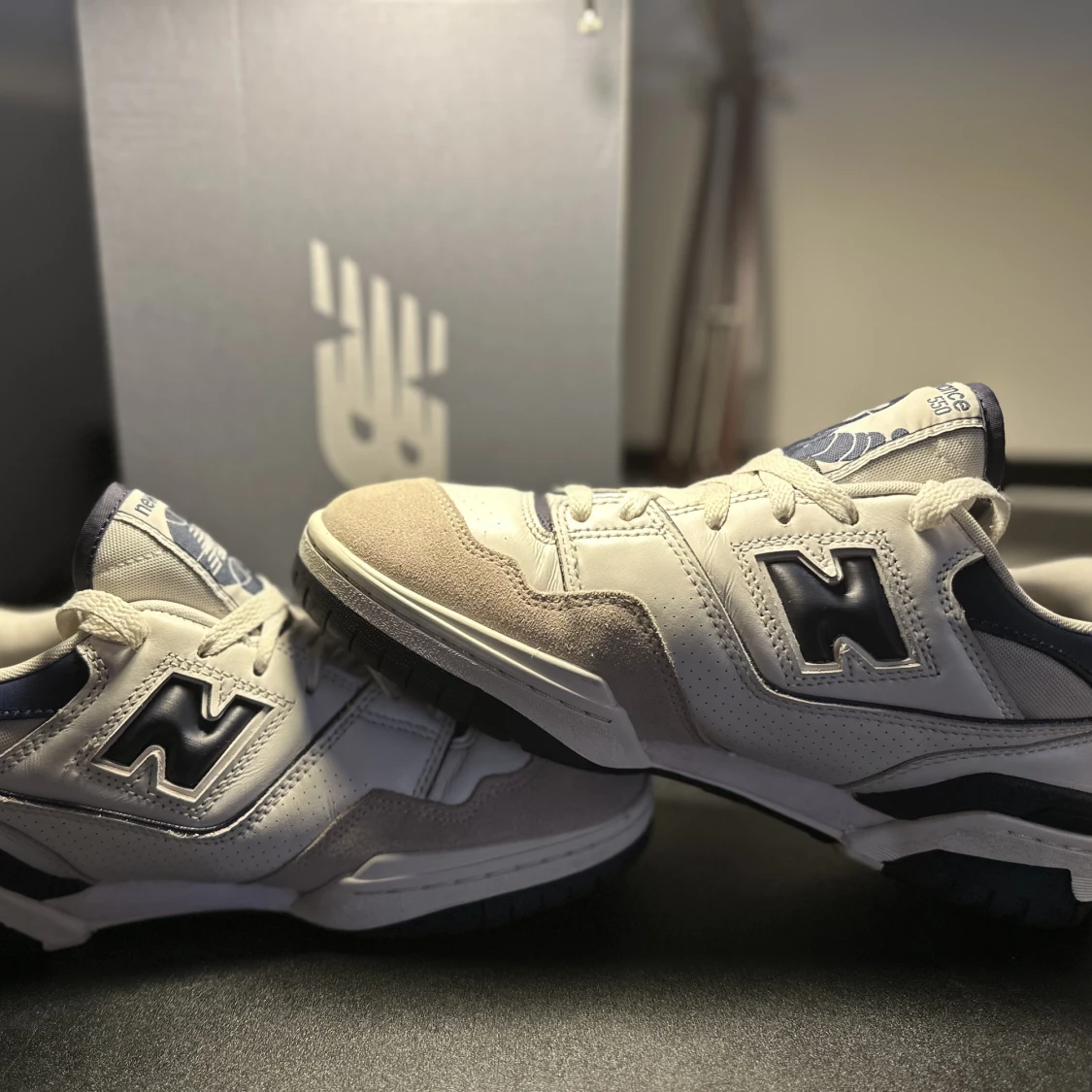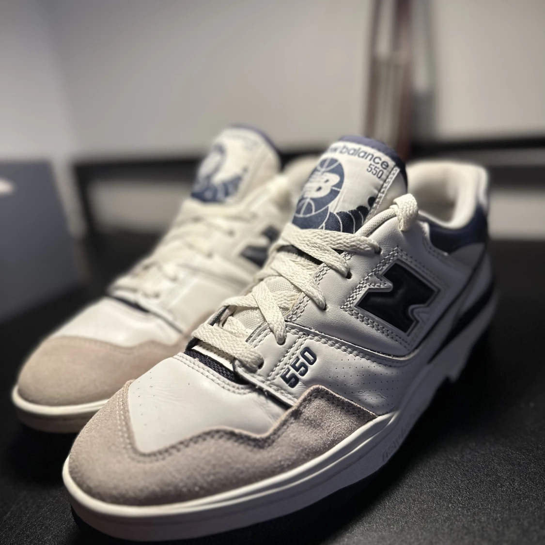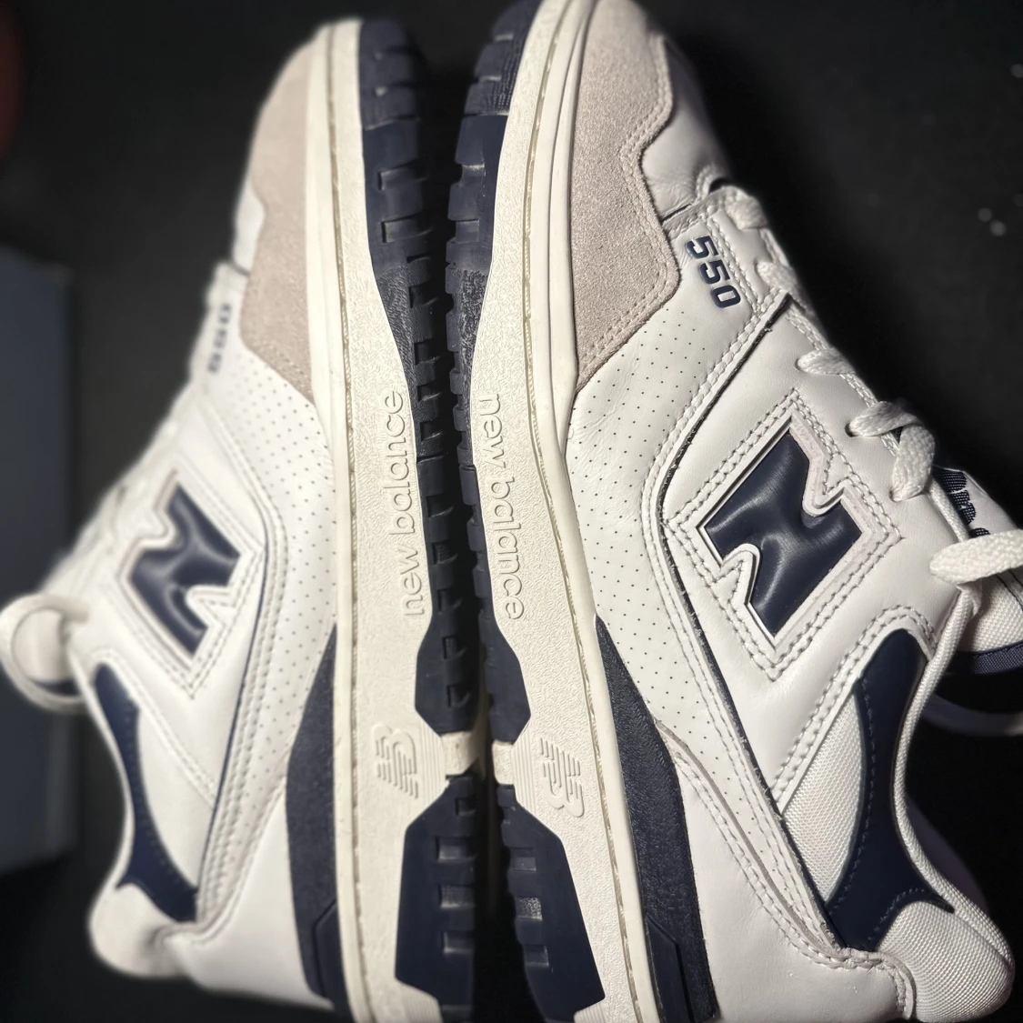 En jätte fint new balance 550 navy som är köpta för 3149kr ny pris. Passar inte min style längre, som också använda ett par gånger bara. Kvitto och orginal kartong finns.