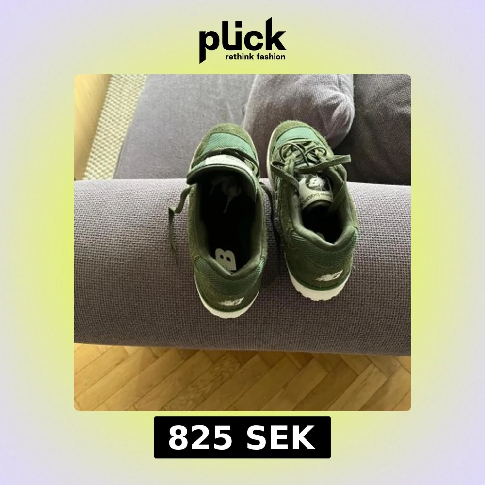 Snygga gröna New Balance 550 sneakers med snörning. Skorna har en stilren design med vit sula och märkets logga på sidan. Perfekta för en casual look.