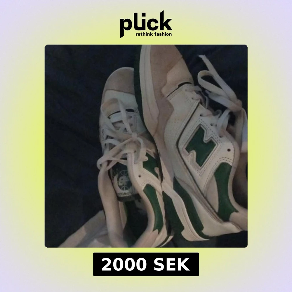 Säljer ett par New Balance 550 sneakers i vitt och grönt. Skorna har klassisk retrodesign med gröna detaljer, perforerad ovandel i skinn och mocka vid tån. Låg modell med snörning och platt sula, perfekt för dig som gillar streetstyle och sportig vibe.