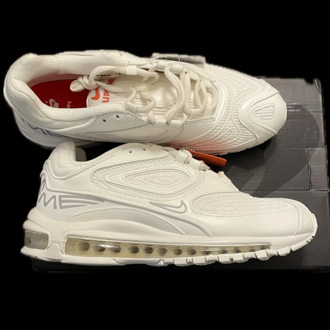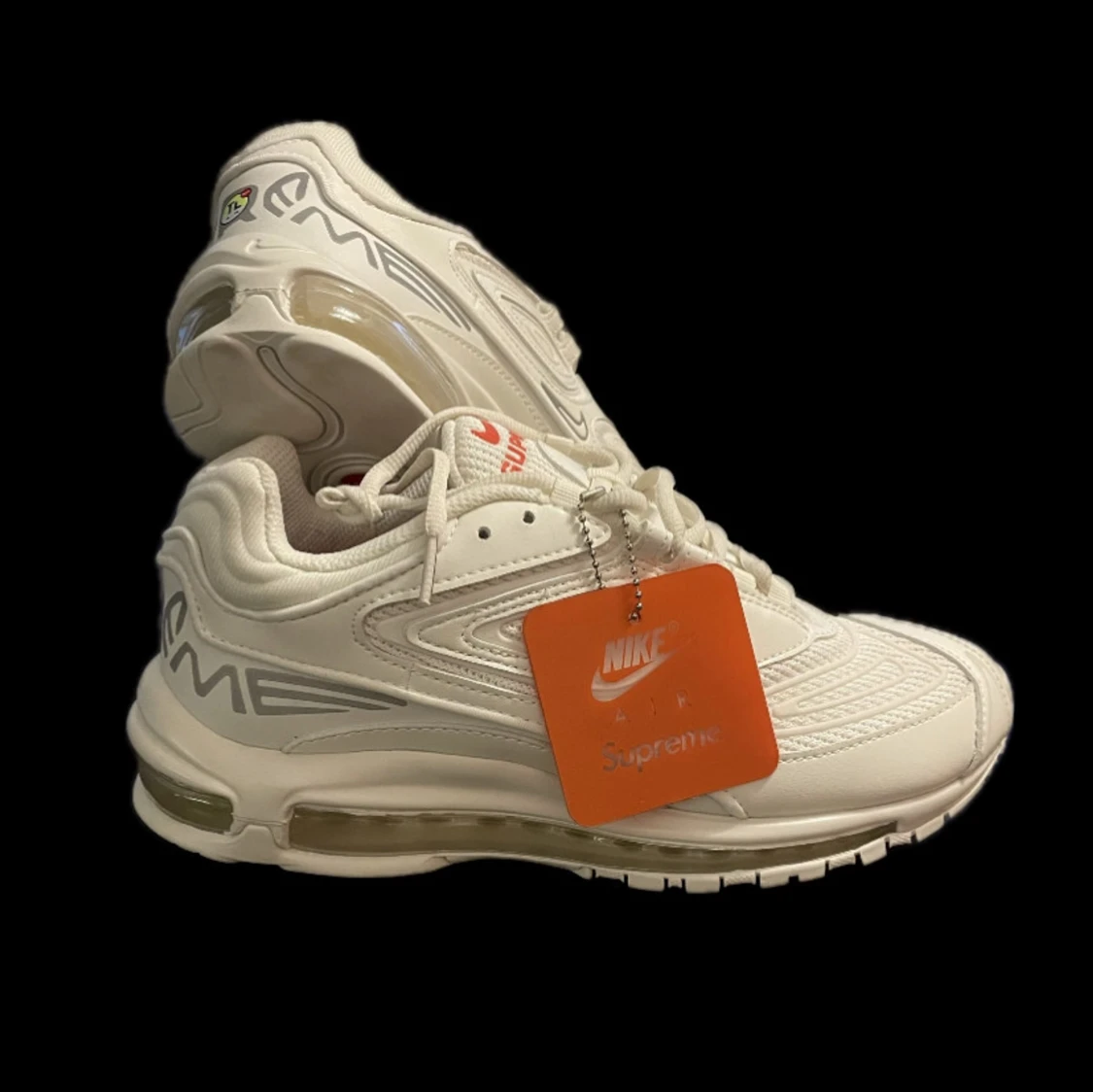 Helt nya Nike air max 98 tl x supreme. Har låda och allt kvar. Aldrig använda utomhus - säljer då de var för små för mig. Vid ytterligare funderingar skicka ett dm!