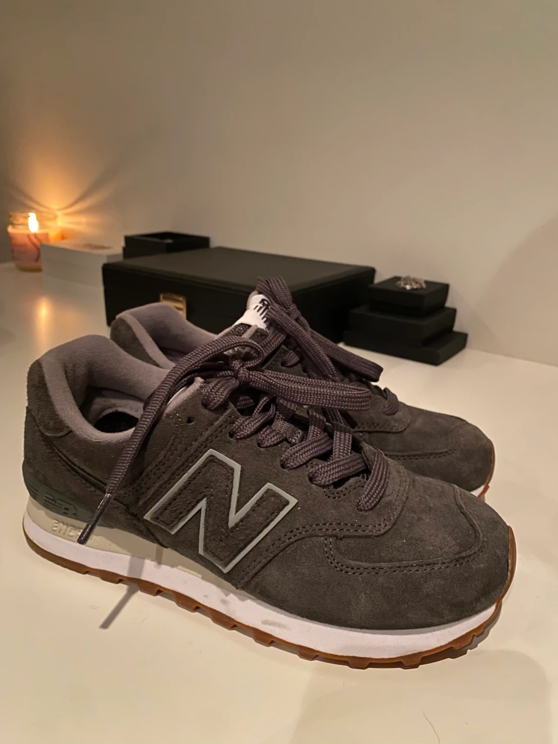 Färgen är mörkgrå💕 även mörkrets snören! Ljusgrå inuti och runt N märket 🫶🏼Använda 1 gång så dom är som nya!