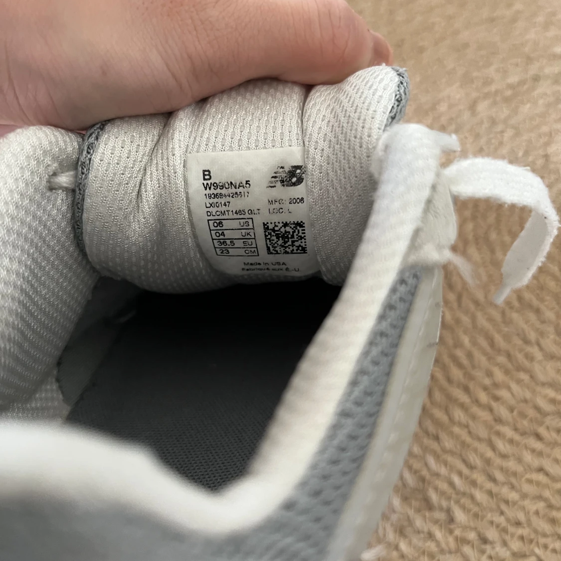 New Balancw 990v5! Så fina skor som jag köpte begagnat men de var tyvärr för små 😭 Hann bara använda dessa 2 ggr så de är i väldigt bra skick. Finns dock slitage på insidan vid hälen från tidigare användare, se bild :)