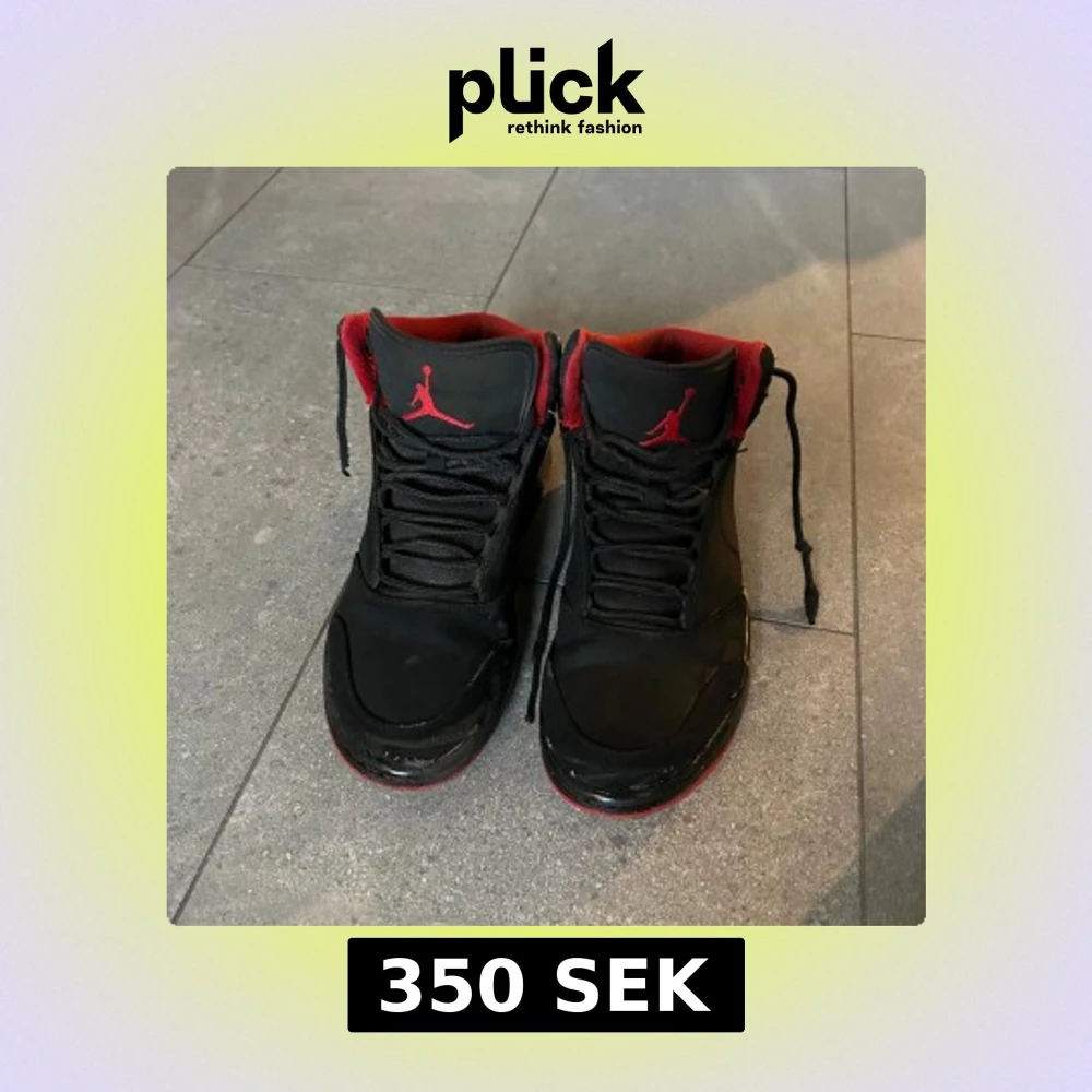Snygga svarta Nike Air Jordans med röda detaljer. Säljer nu mina Jordan 1 för att jag har köpt nya skor , dom är både väldigt snygga och sköna. Priset han diskuteras vid snabb affär.