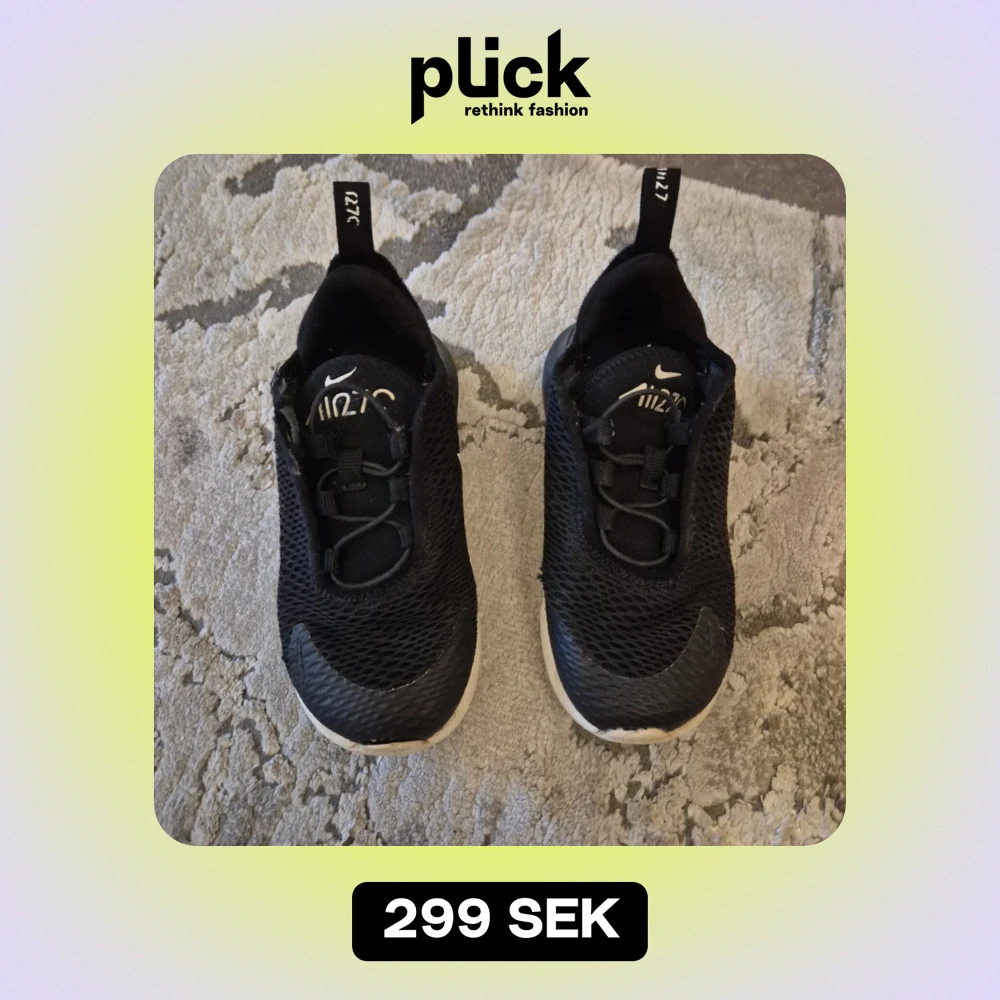 Säljer ett par svarta Nike sneakers i mycket bra skick. De har en stilren design med vit sula och Nike-logga på sidan. Perfekta för både vardag och träning. Skorna har en bekväm passform och är lätta att matcha med olika outfits.