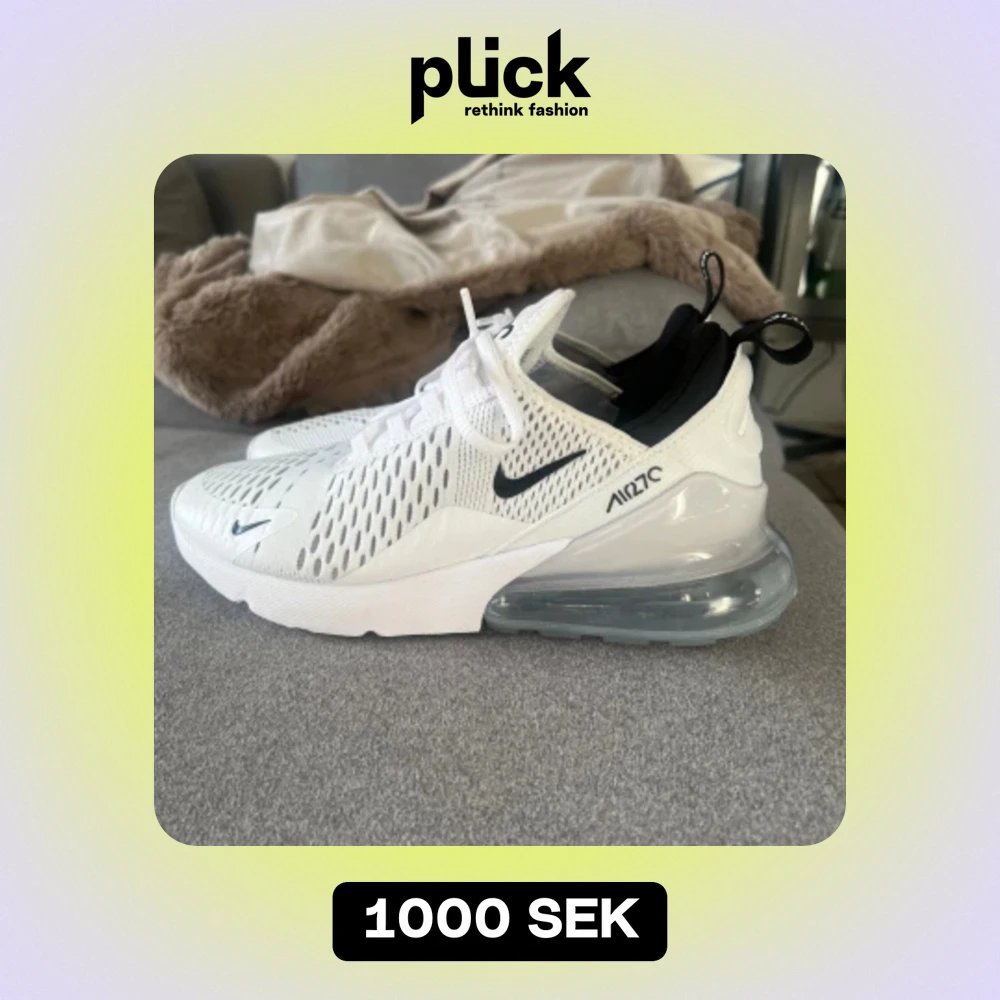 Nike 270 i storlek 40 aldrig använda ute utom endast testade hemma, säljer då jag inte känner att dem passar mig Kan skicka fler bilder om behövs