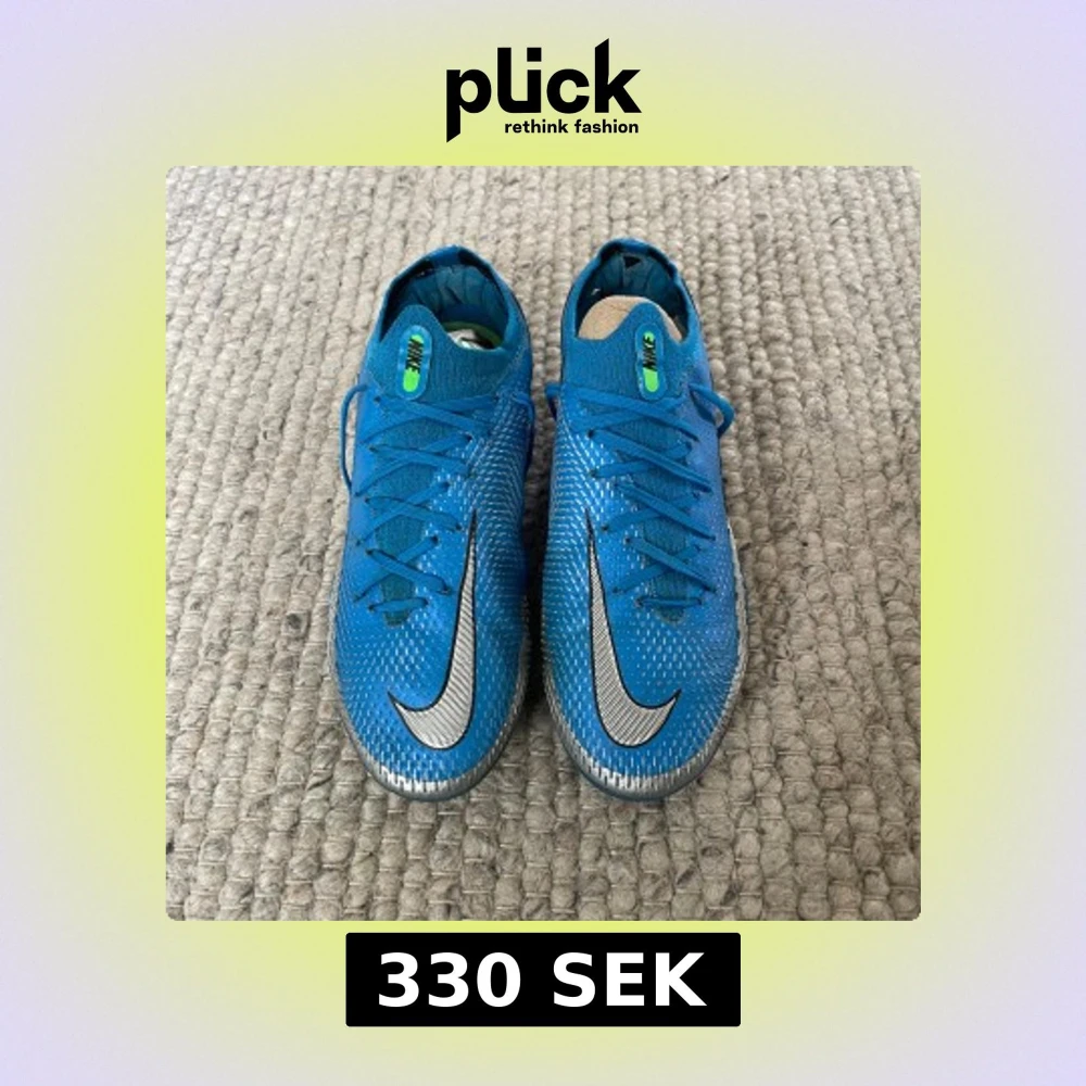 Säljer ett par Nike Phantom GT2 Elite fotbollsskor i blått med silverdetaljer i storlek 37,5. Skorna är välanvända men fortfarande i ganska bra skick. Dobbarna är inte slitna mycket då jag har varit försiktig med dem. Som man ser på sista bilden så är det lite slitet vid hälen men det är högt upp så det märks nog inte så mycket.