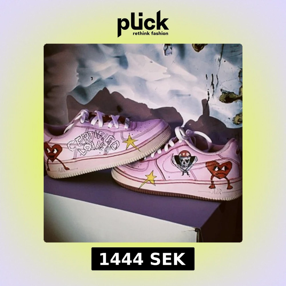Snygga rosa Nike sneakers med handmålade detaljer som hjärtan och stjärnor. Skorna har en klassisk design med snörning och en bekväm sula. Perfekta för dig som vill ha något unikt och personligt i din skogarderob.