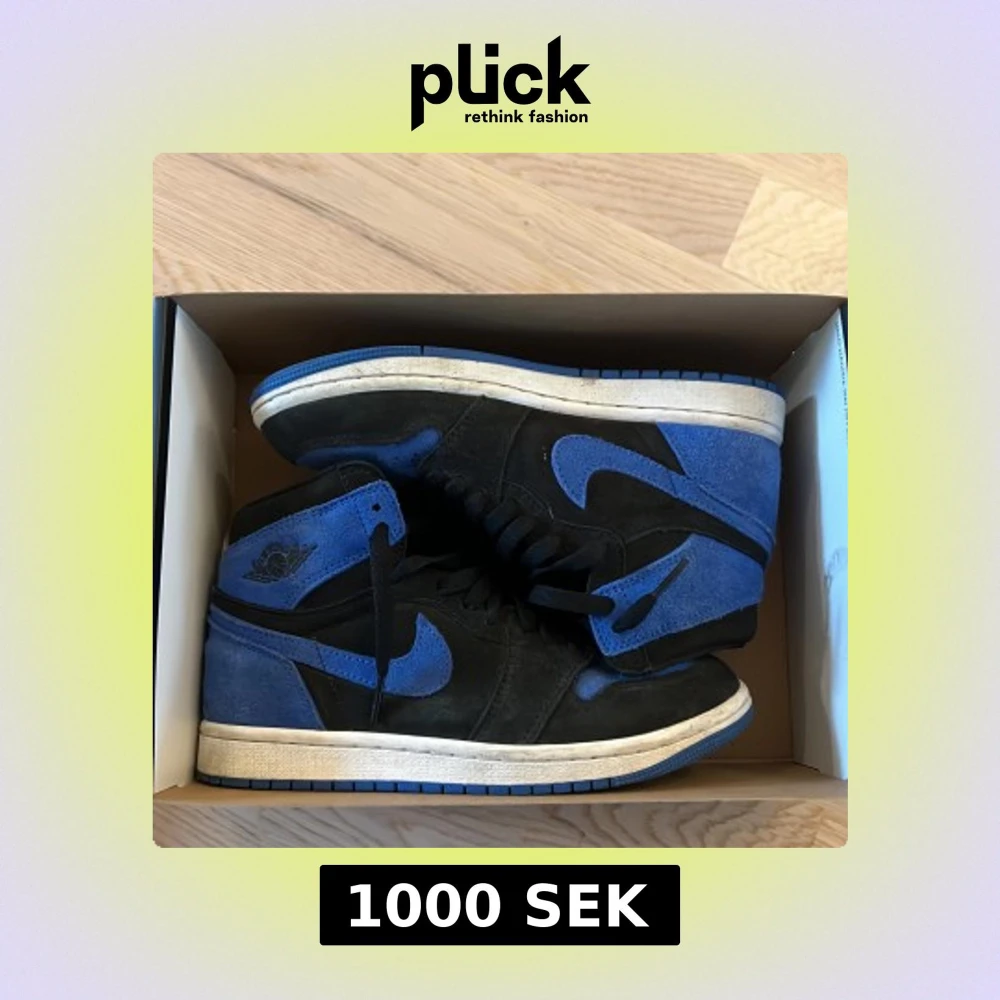 Jag säljer ett par Jordan 1 retro og High i en svart blå färg i mocha material. Jag säljer dem för jag har vuxit ut dem.