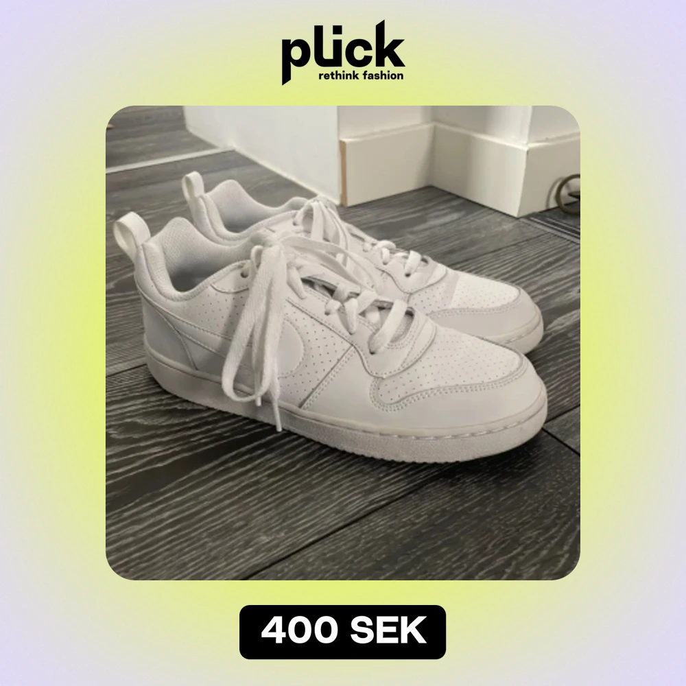 Vita skor från Nike i storlek 37,5. Endast testade så väldigt rena och fina fortfarande! Bara att höra av sig om det finns frågor🤗