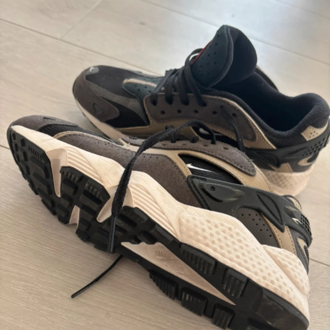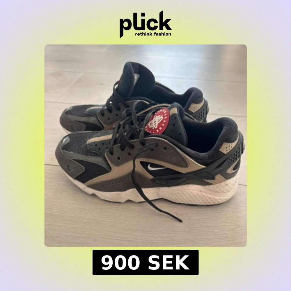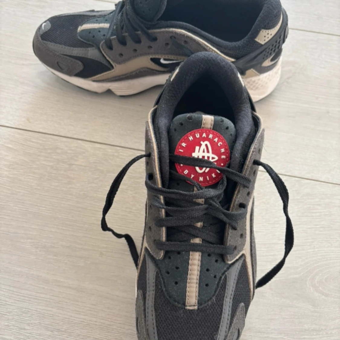 Nike Air Huarache sneakers i svart och beige med coola detaljer och vit sula. Ovandel i mesh och mocka, klassisk Huarache-logga på plösen och snörning framtill. Snygg och sportig siluett som passar perfekt till streetwear.